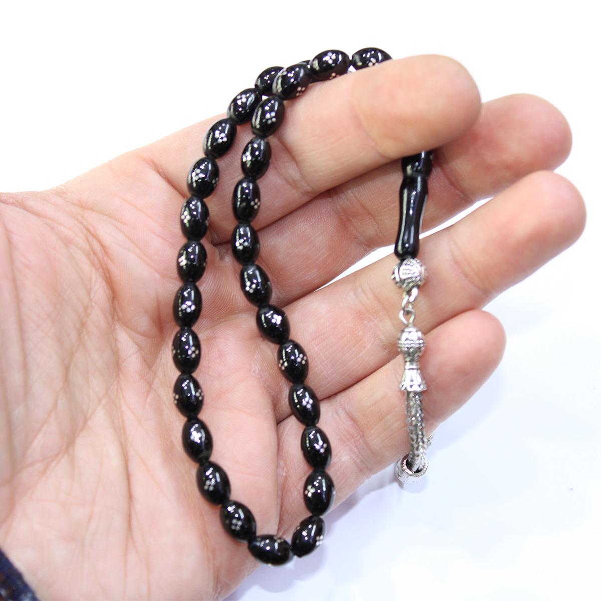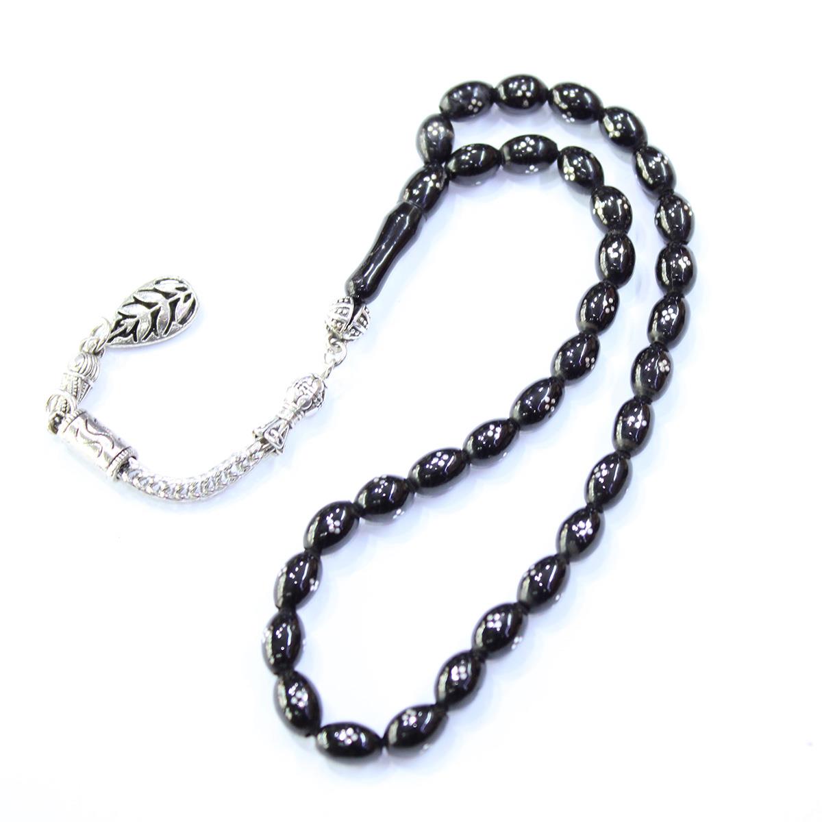 12 li İşleme Oval Oltu Taşı Tespih 5,5*8 (mm)