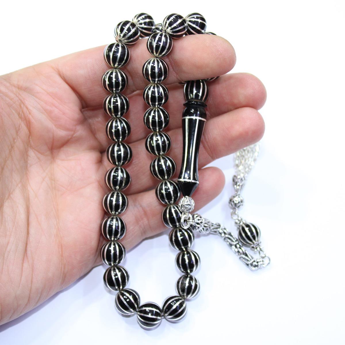 12 li Kapruz İşlemeli Oltu Taşı Tespih 10,5 (mm)