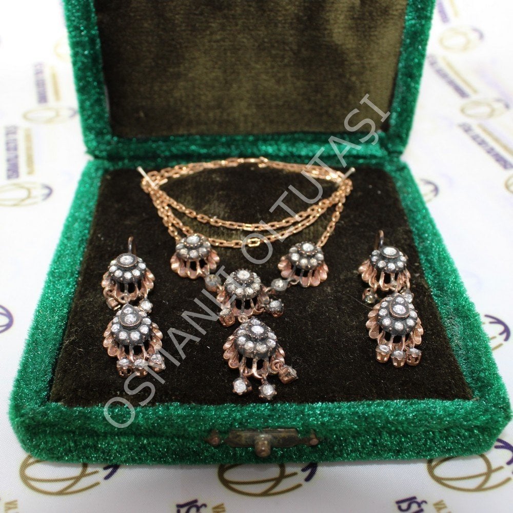14 Ayar Altın Elmas Küpe ve Gerdanlık Set