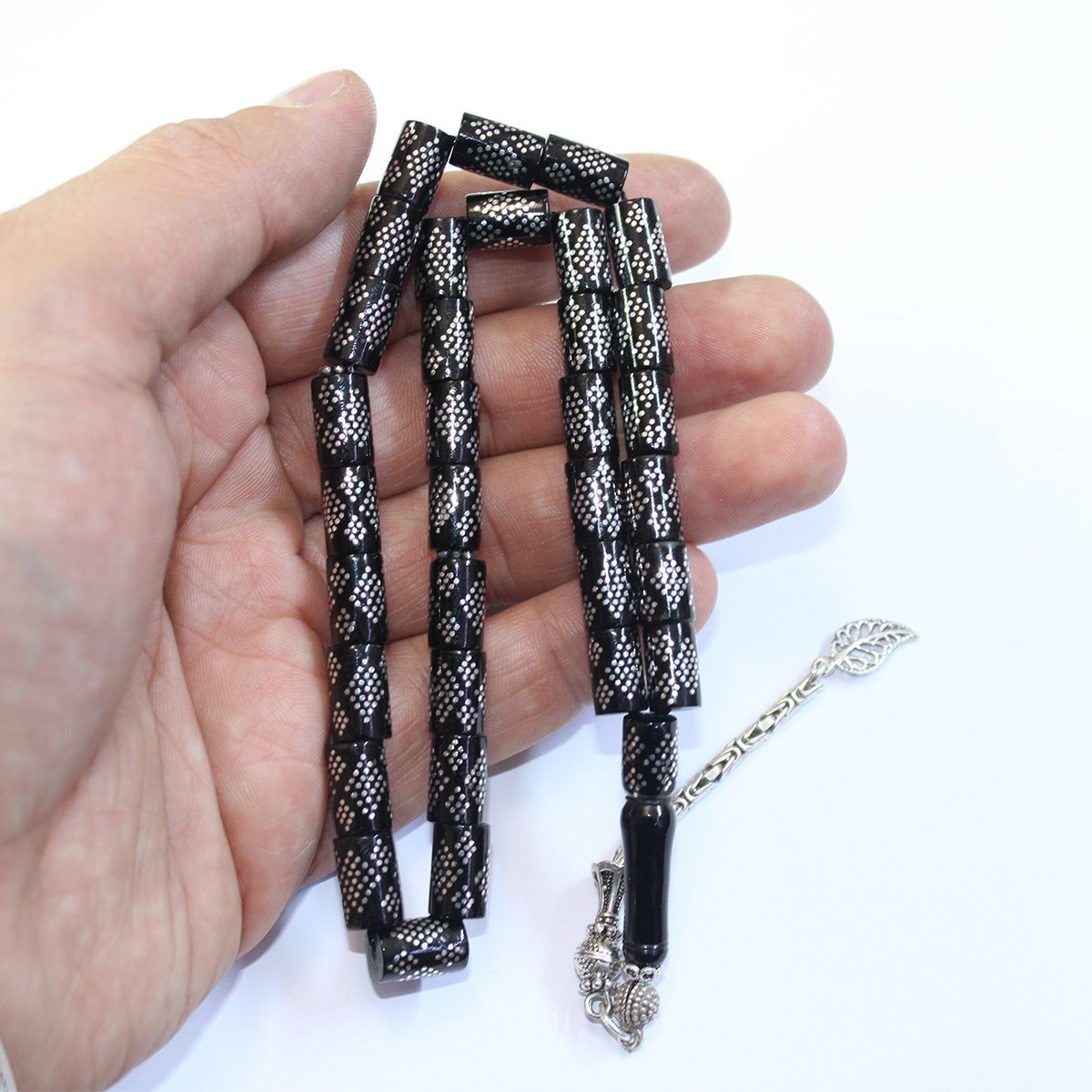 25 li Baklava İşlemeli Kesme Oltu Taşı Tespih 6,5*10 (mm)