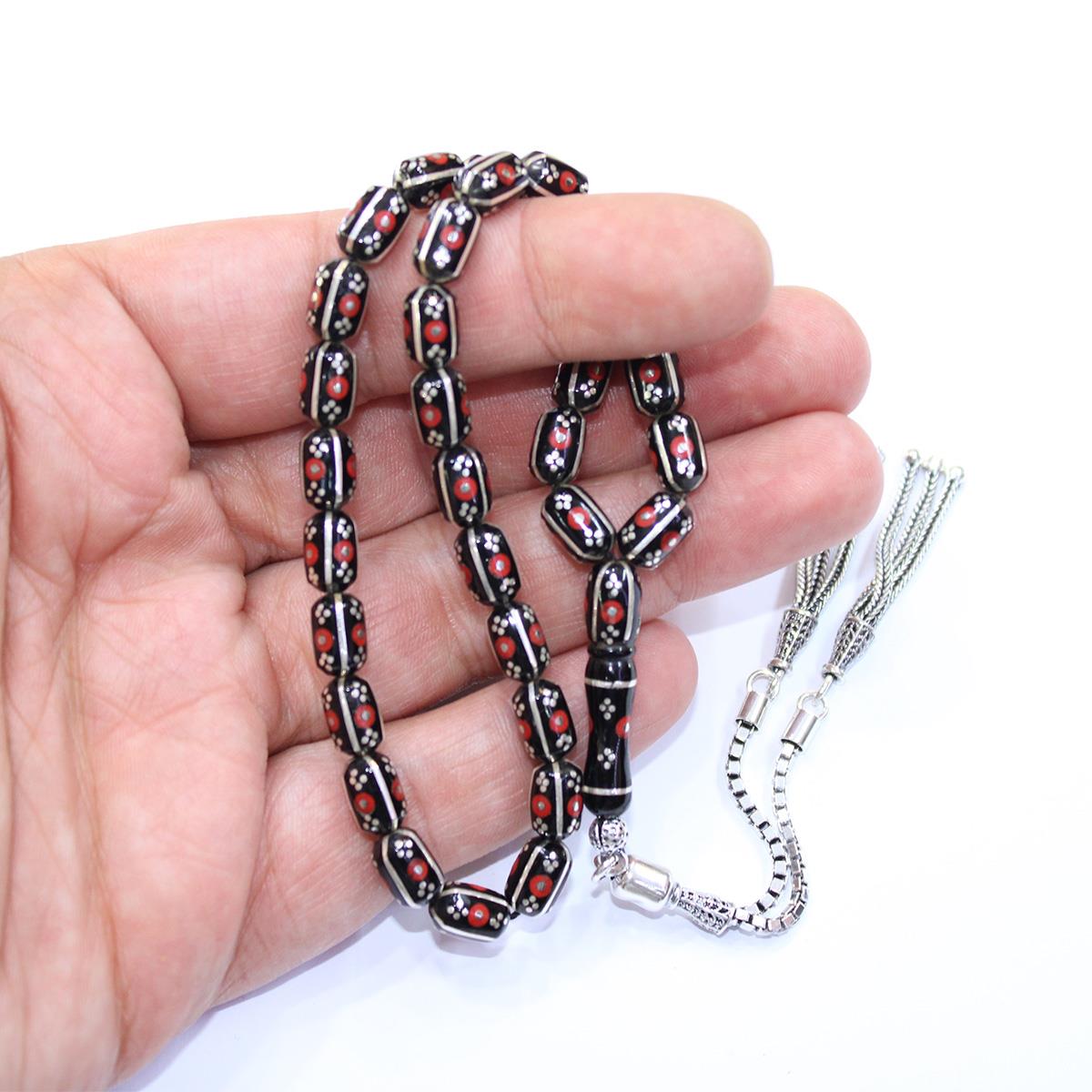4 lü Kapruz İşlemeli Mercan Oltu Taşı Tespih 5,5*8,5 (mm)