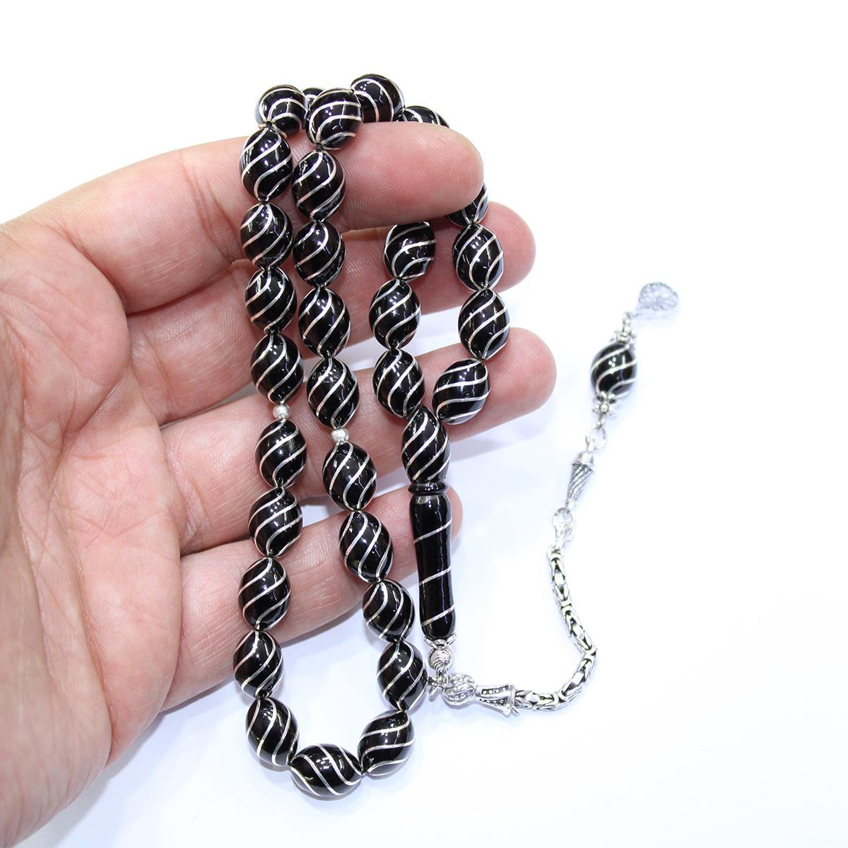 6'lı Çeşm-i Bülbül Beyzi Oltu Taşı Tespih 8,5*11 (mm)