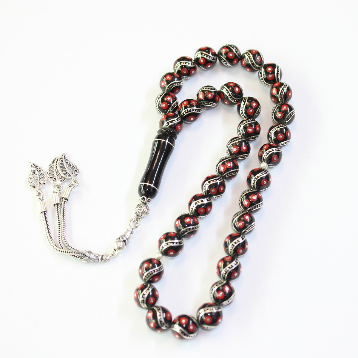 6 lı Çeşm-i Bülbül Mercan İşlemeli Oltu Taşı Tespih 9,5 (mm)