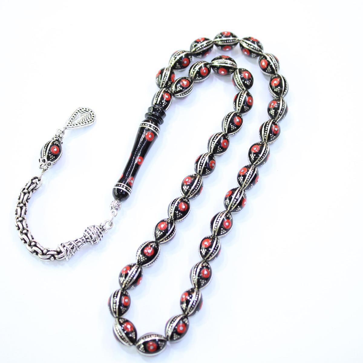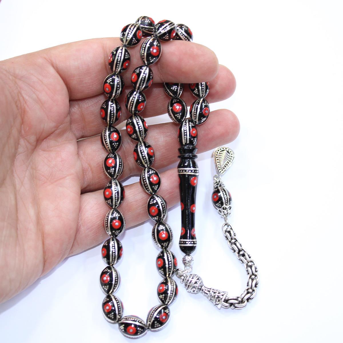 6 lı Mercan İşlemeli Oltu Taşı Tespih 8,5*11,5 (mm)