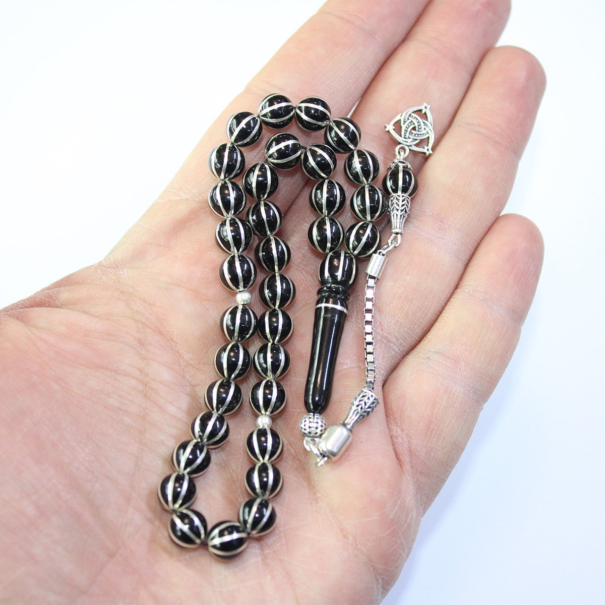 8 li Karpuz İşlemeli Oltu Taşı Tespih 7 (mm)