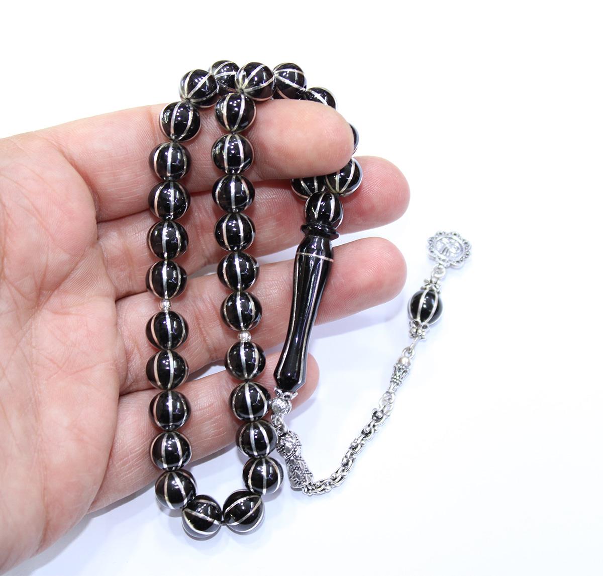 8'li Karpuz Dilimi Küre Oltu Taşı Tespih 9 (mm)