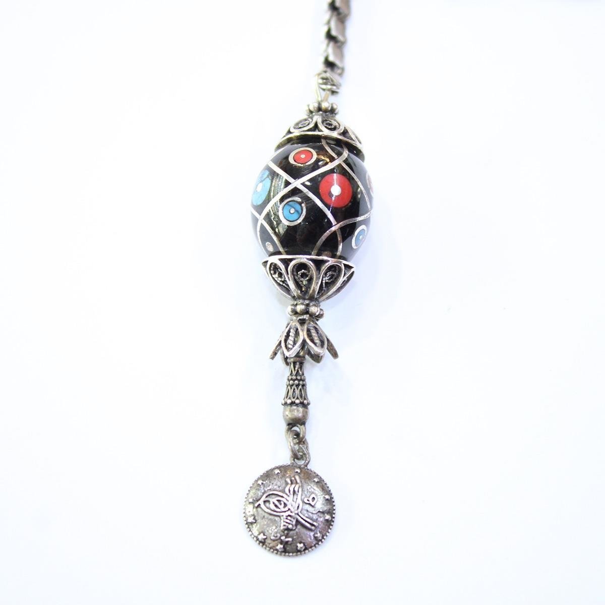 925 Ayar Gümüş Mercan Firuze İşlemeli Oltu Taşı Anahtarlık