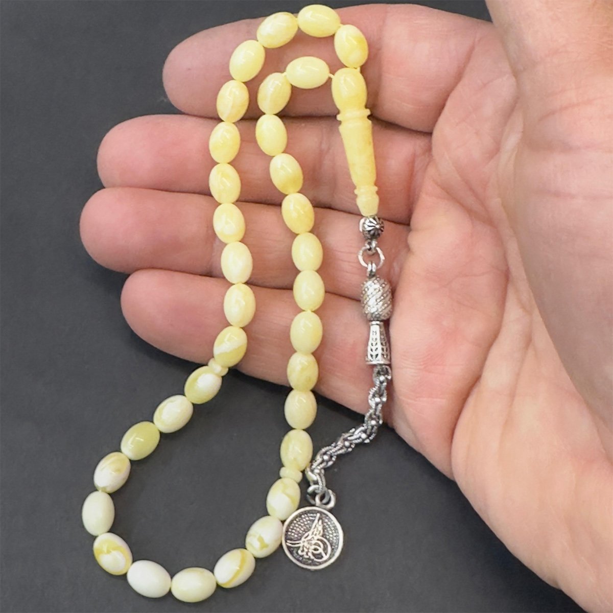 Akça Kaliningrad Damla Kehribar Badem Tespih 6*8 (mm)-1