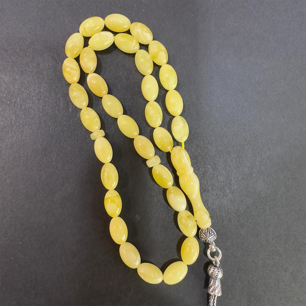 Kehribar taşı sanılanın aksine bir mücevher değil 40 milyon yıl önce ölen birçam türü olan Pinus succinifera ağaçlarının fosilleşmiş reçinesidir. Öyle ki kehribarlar, tarih öncesi böcekleri bile içinde saklamıştır. İnsanların binlerce yıldır, deniz kıyılarından, akarsulardan, alüvyon ve hatta bataklıklar arasından topladıkları bu değerli taş yeryüzünden silinen onlarca farklı ağaç türünün insanlığa armağanı olmuştur. 33 tanesi de çeşitli büyüklüklerde, bir kaç milyon yaşında haşere ihtiva eden kaliningrad damla kehribar tespih.