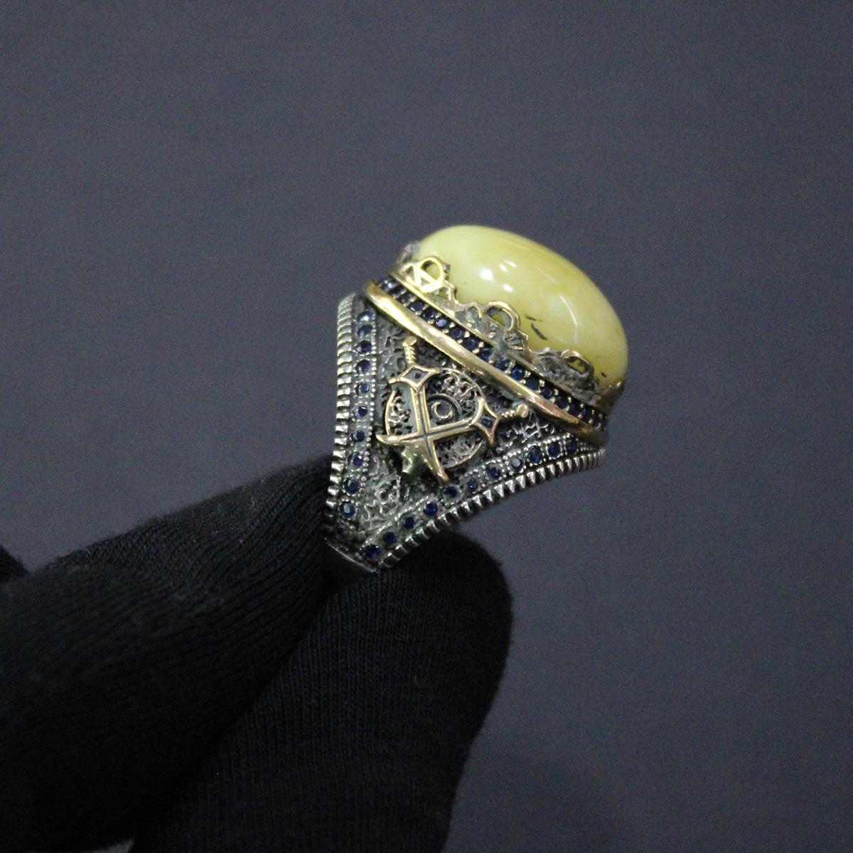 Akça Kaliningrad Damla Kehribar Erkek Yüzük - 4