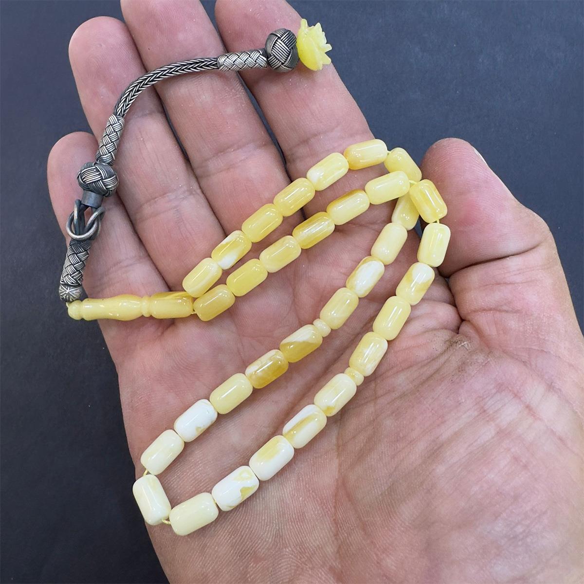 Kehribar taşı sanılanın aksine bir mücevher değil 40 milyon yıl önce ölen birçam türü olan Pinus succinifera ağaçlarının fosilleşmiş reçinesidir. Öyle ki kehribarlar, tarih öncesi böcekleri bile içinde saklamıştır. İnsanların binlerce yıldır, deniz kıyılarından, akarsulardan, alüvyon ve hatta bataklıklar arasından topladıkları bu değerli taş yeryüzünden silinen onlarca farklı ağaç türünün insanlığa armağanı olmuştur. 33 tanesi de çeşitli büyüklüklerde, bir kaç milyon yaşında haşere ihtiva eden kaliningrad damla kehribar tespih.