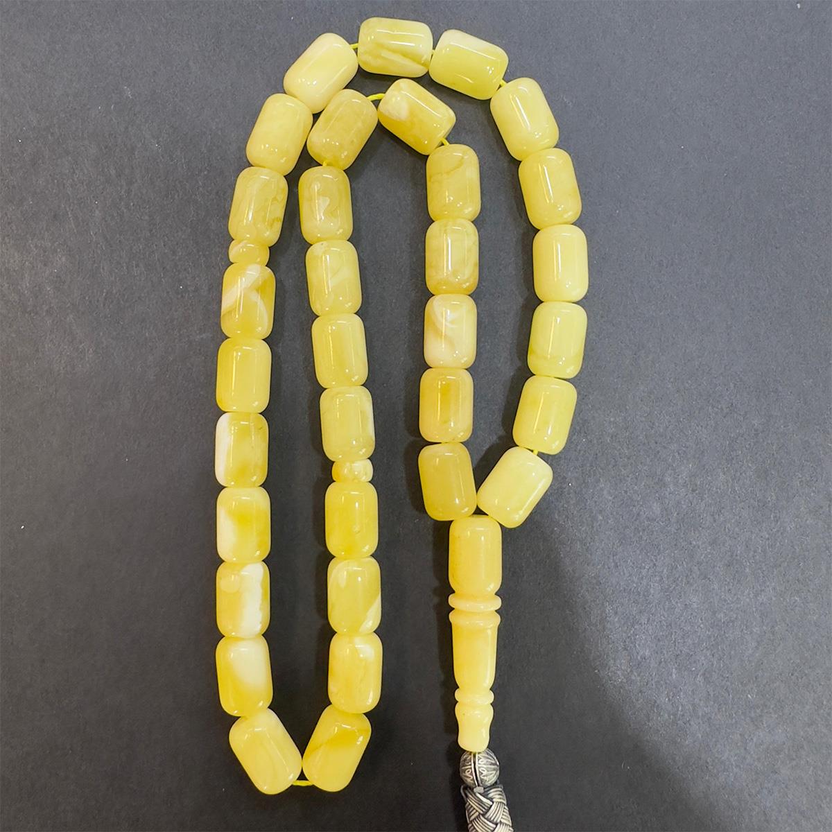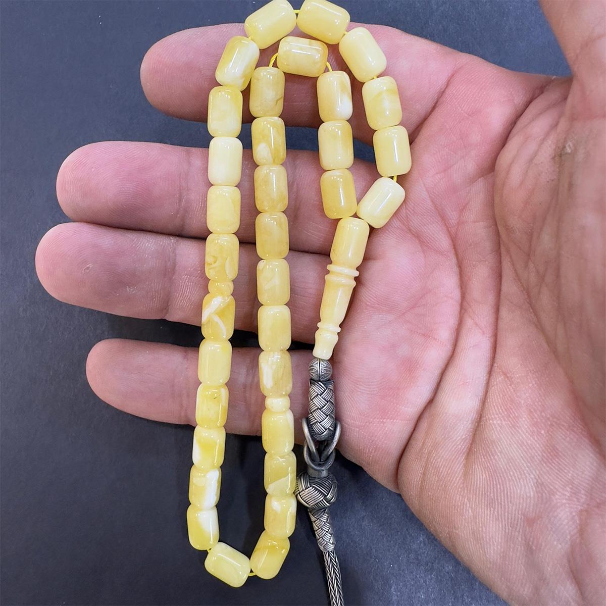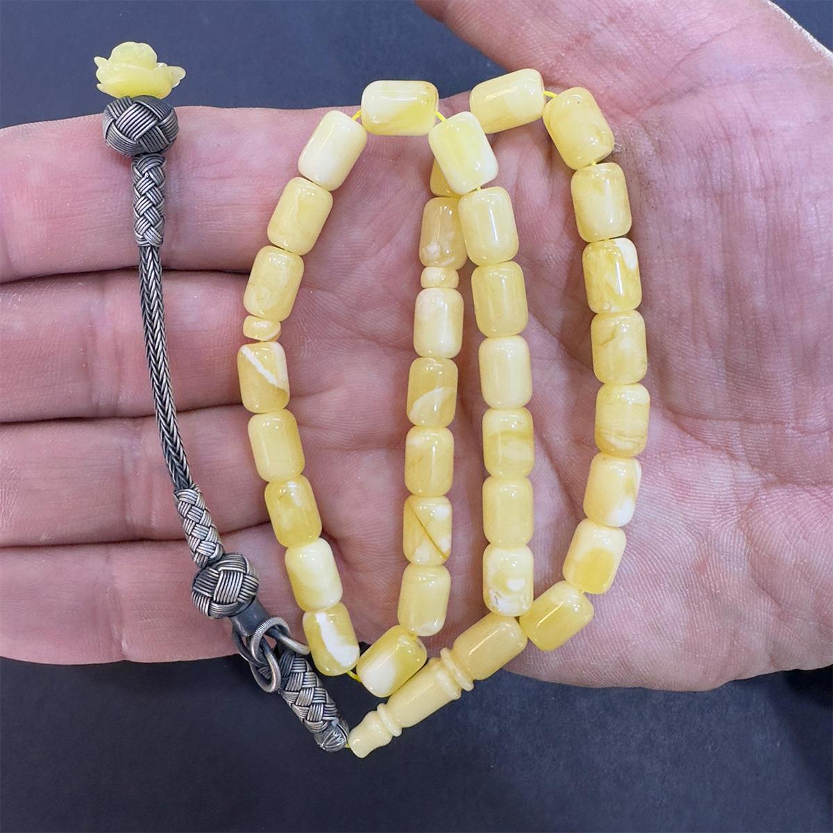 Kehribar taşı sanılanın aksine bir mücevher değil 40 milyon yıl önce ölen birçam türü olan Pinus succinifera ağaçlarının fosilleşmiş reçinesidir. Öyle ki kehribarlar, tarih öncesi böcekleri bile içinde saklamıştır. İnsanların binlerce yıldır, deniz kıyılarından, akarsulardan, alüvyon ve hatta bataklıklar arasından topladıkları bu değerli taş yeryüzünden silinen onlarca farklı ağaç türünün insanlığa armağanı olmuştur. 33 tanesi de çeşitli büyüklüklerde, bir kaç milyon yaşında haşere ihtiva eden kaliningrad damla kehribar tespih.