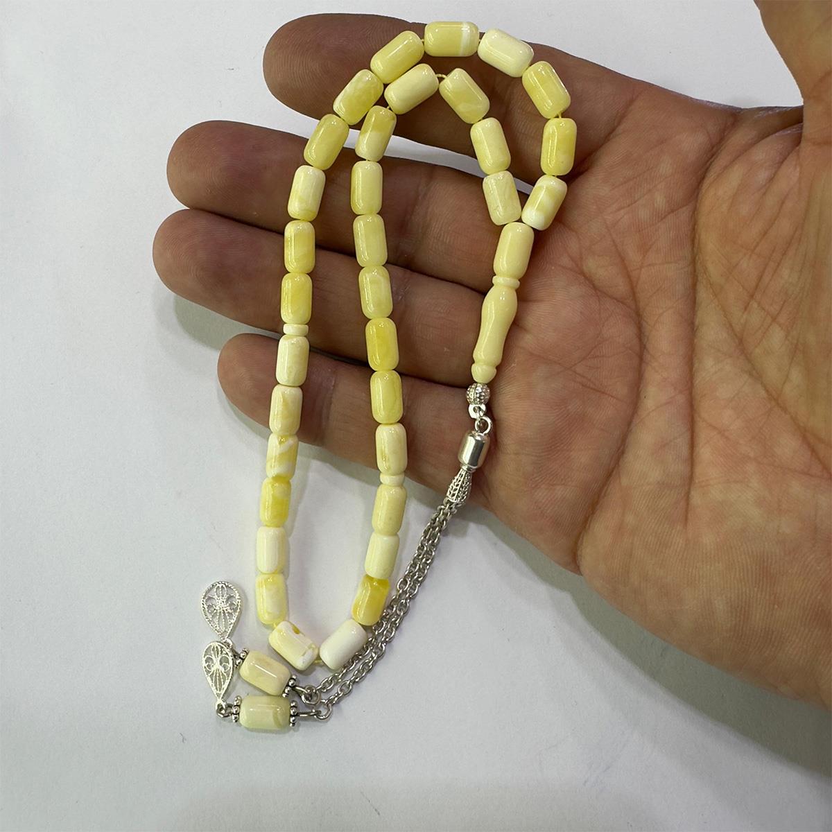 Kehribar taşı sanılanın aksine bir mücevher değil 40 milyon yıl önce ölen birçam türü olan Pinus succinifera ağaçlarının fosilleşmiş reçinesidir. Öyle ki kehribarlar, tarih öncesi böcekleri bile içinde saklamıştır. İnsanların binlerce yıldır, deniz kıyılarından, akarsulardan, alüvyon ve hatta bataklıklar arasından topladıkları bu değerli taş yeryüzünden silinen onlarca farklı ağaç türünün insanlığa armağanı olmuştur. 33 tanesi de çeşitli büyüklüklerde, bir kaç milyon yaşında haşere ihtiva eden kaliningrad damla kehribar tespih.