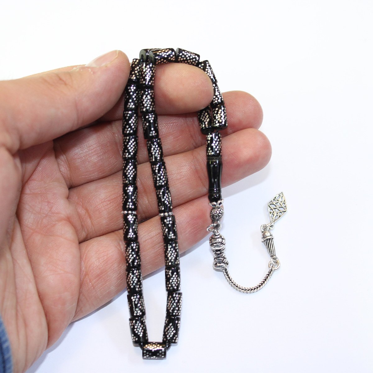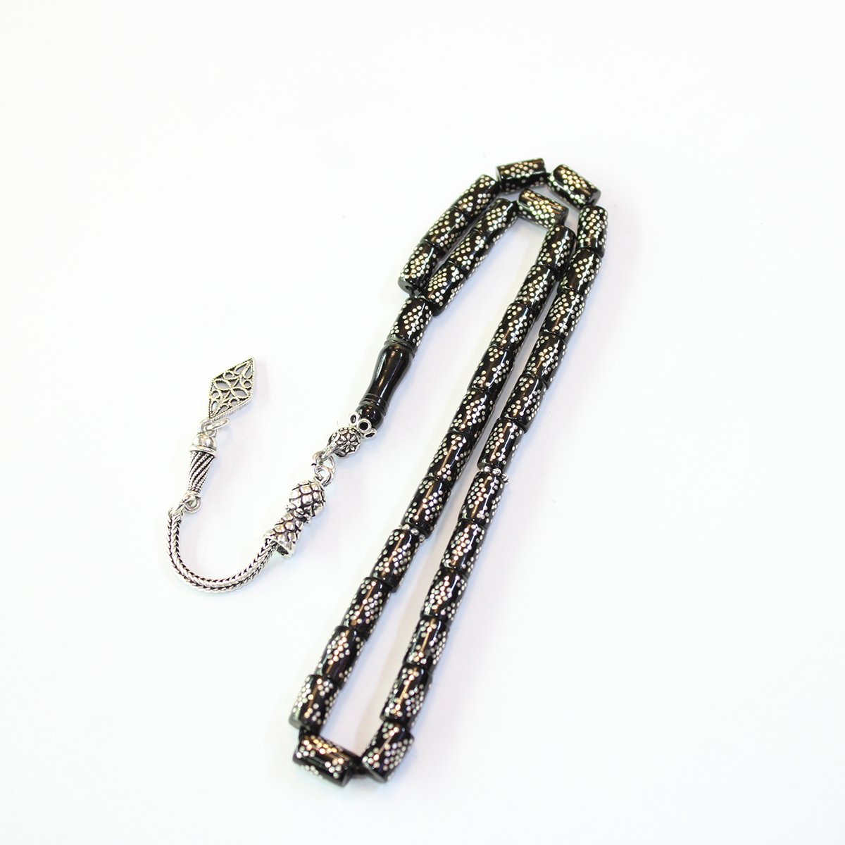 Baklava İşlemeli Kesme Oltu Taşı Tespih 5*8,5 (mm)