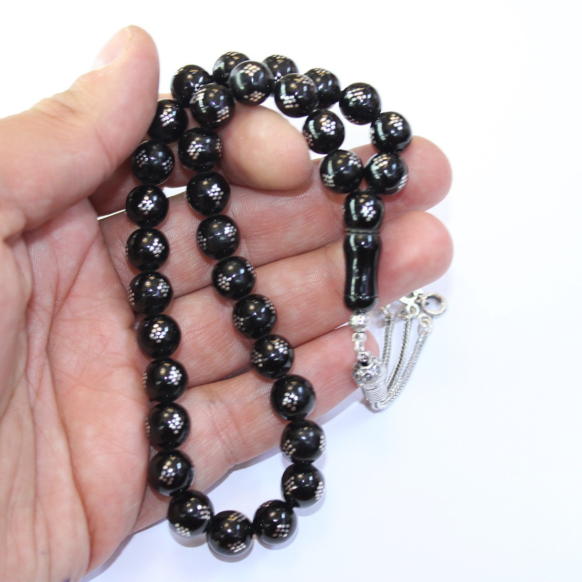 Baklava İşlemeli Oltu Taşı Küre Tespih 9,5 (mm)