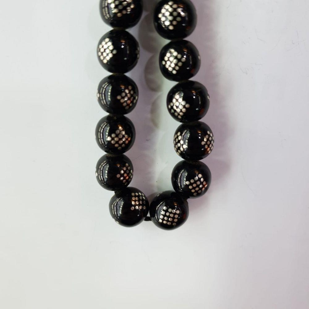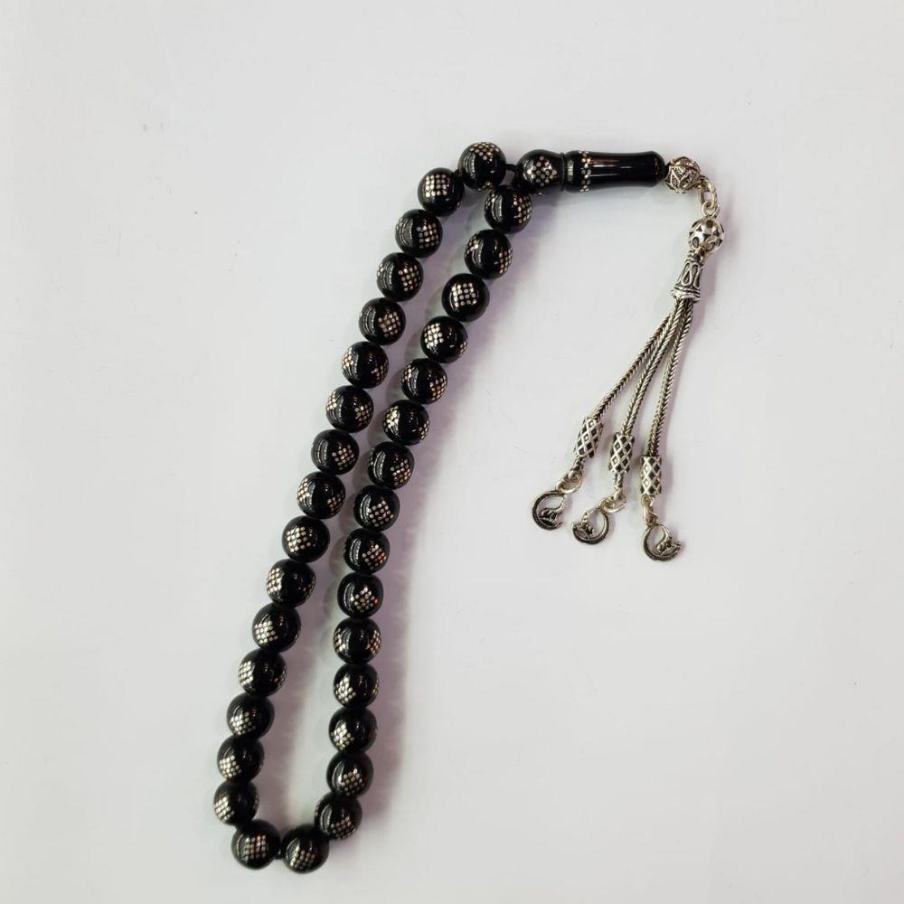 Baklava İşlemeli Oltu Taşı Tespih Küre Kesim 8 (mm)