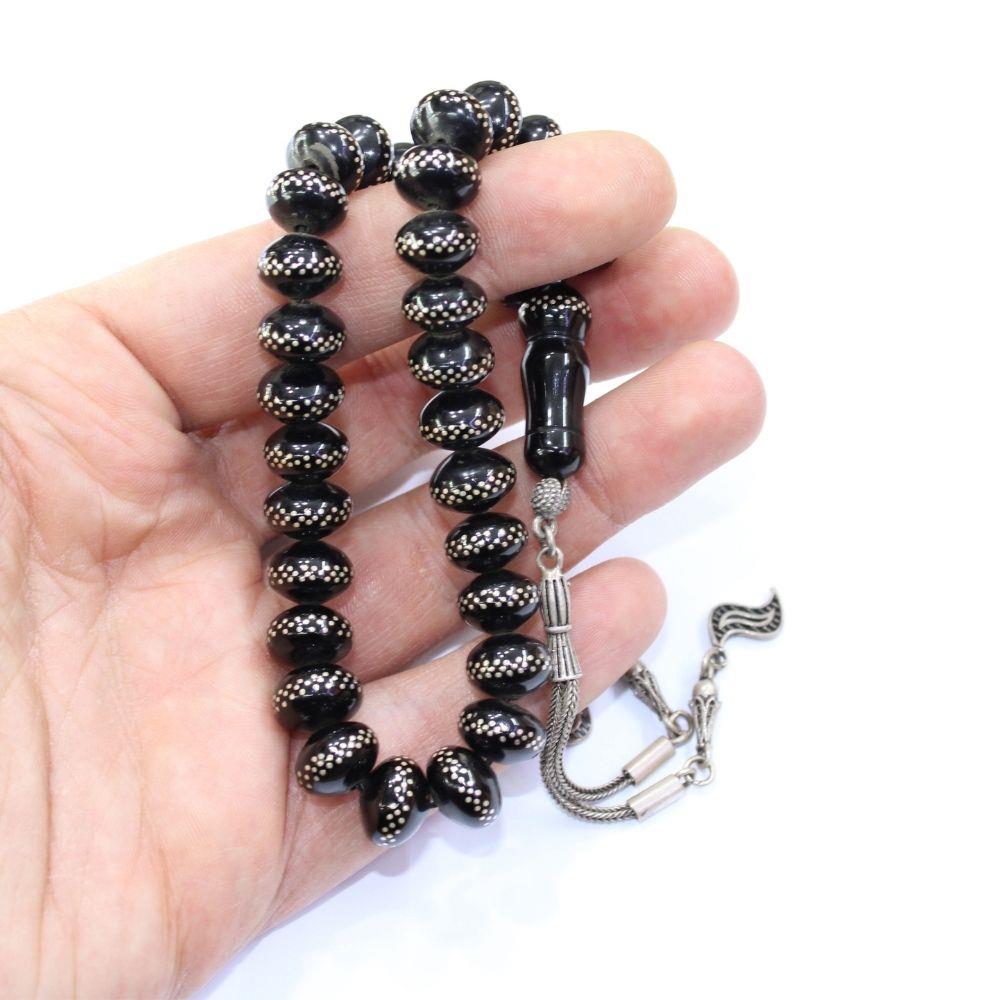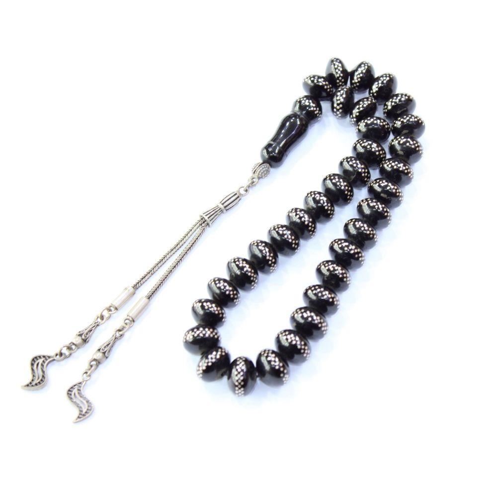 Basık Çift Sıra İşlemeli Oltu Taşı Tespih 11*7,5 (mm)