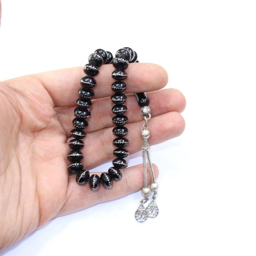 Basık İşlemeli Oltu Taşı Tespih 9 (mm)