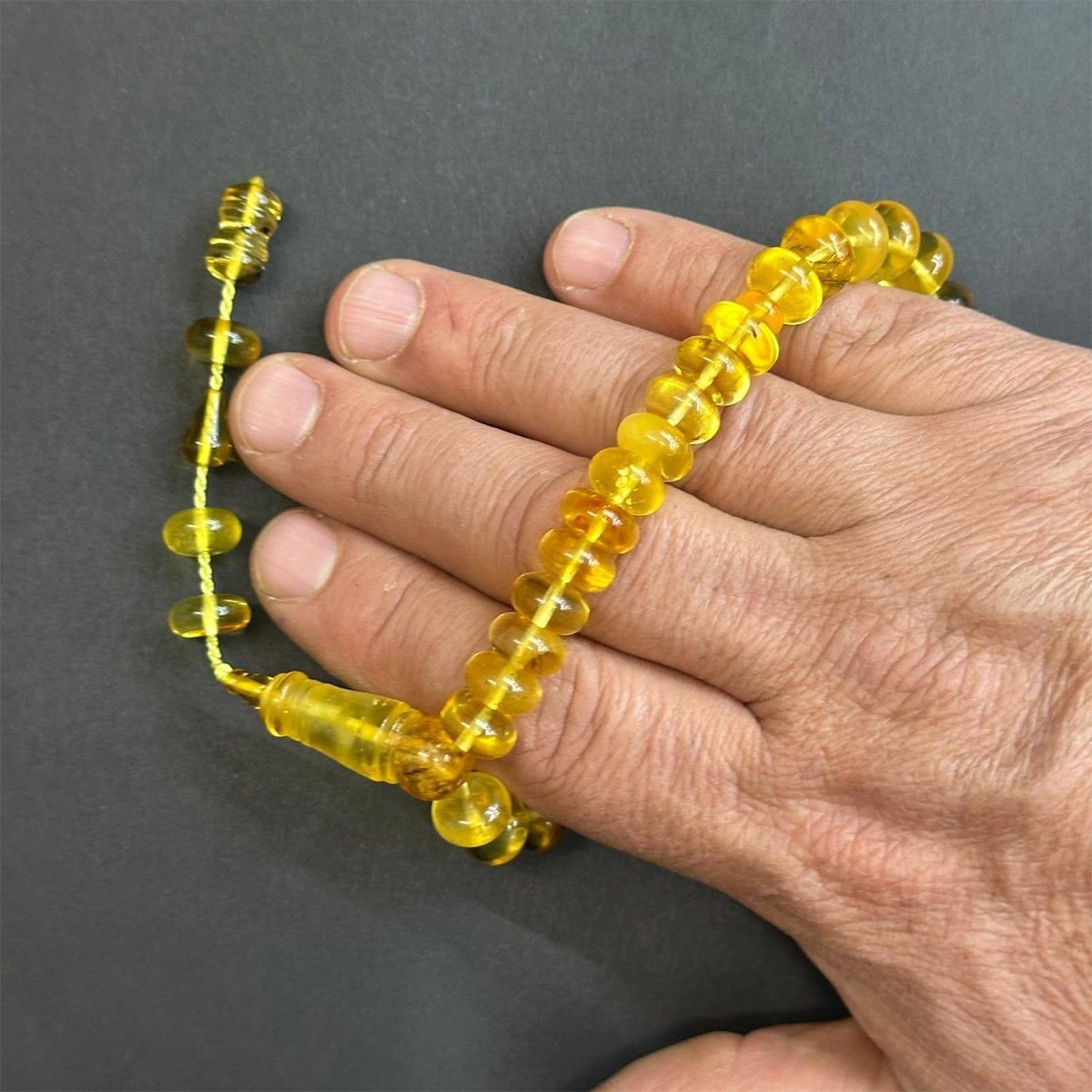 Basık Şeffaf Kaliningrad Damla Kehribar Tespih 6*10,5 (mm)