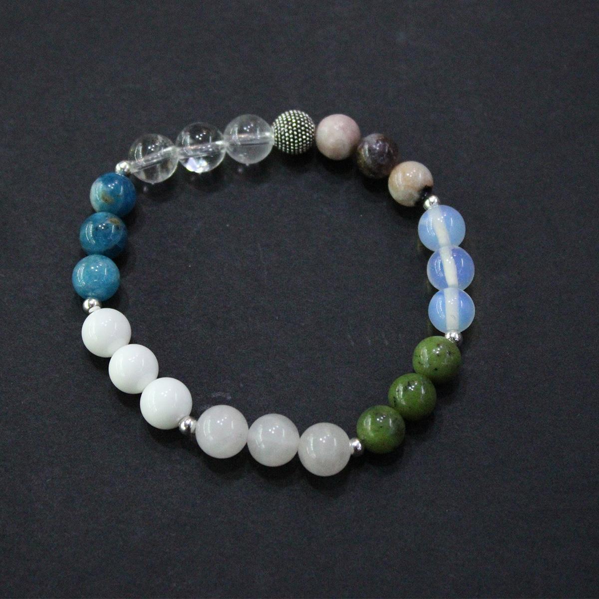 Bileklik de Bulunan Doğal Taşlar: Apatit-Pembe Kuvars-Yeşim-Opal-Sedef-Turmalin-Kristal Kuvars