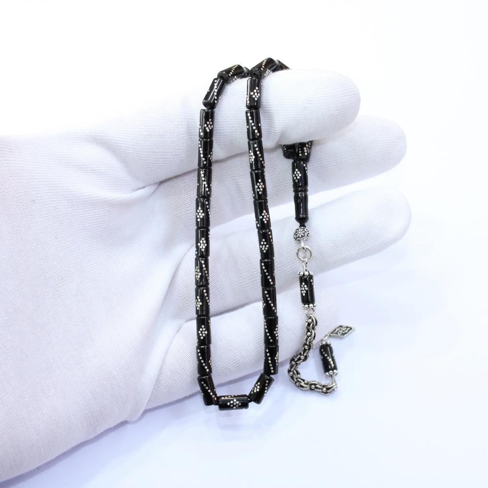 Burgu Baklava İşleme Kesme Oltu Taşı Tespih 4*8,5 (mm)