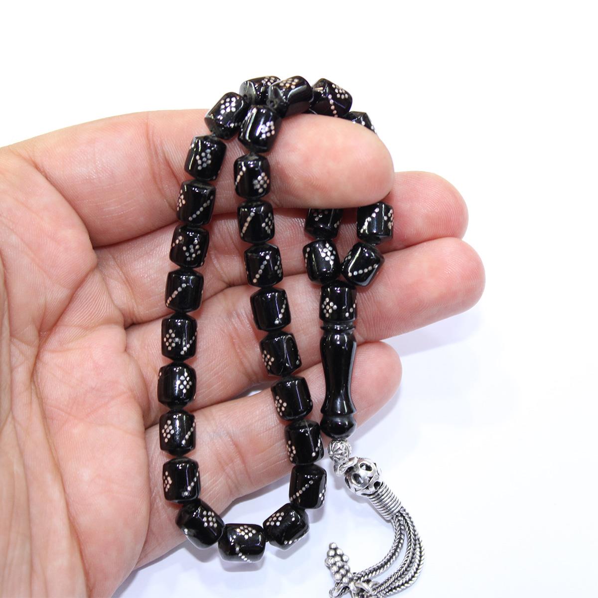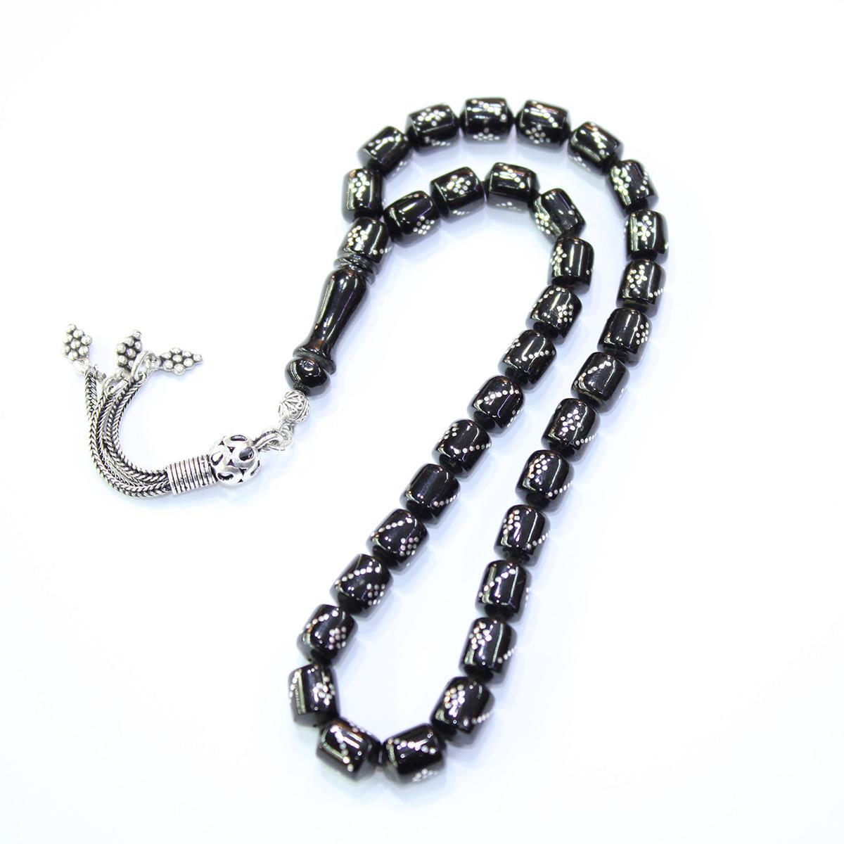 Burgu Baklava İşleme Oltu Taşı Kapsül Tespih 7*8,5 (mm)