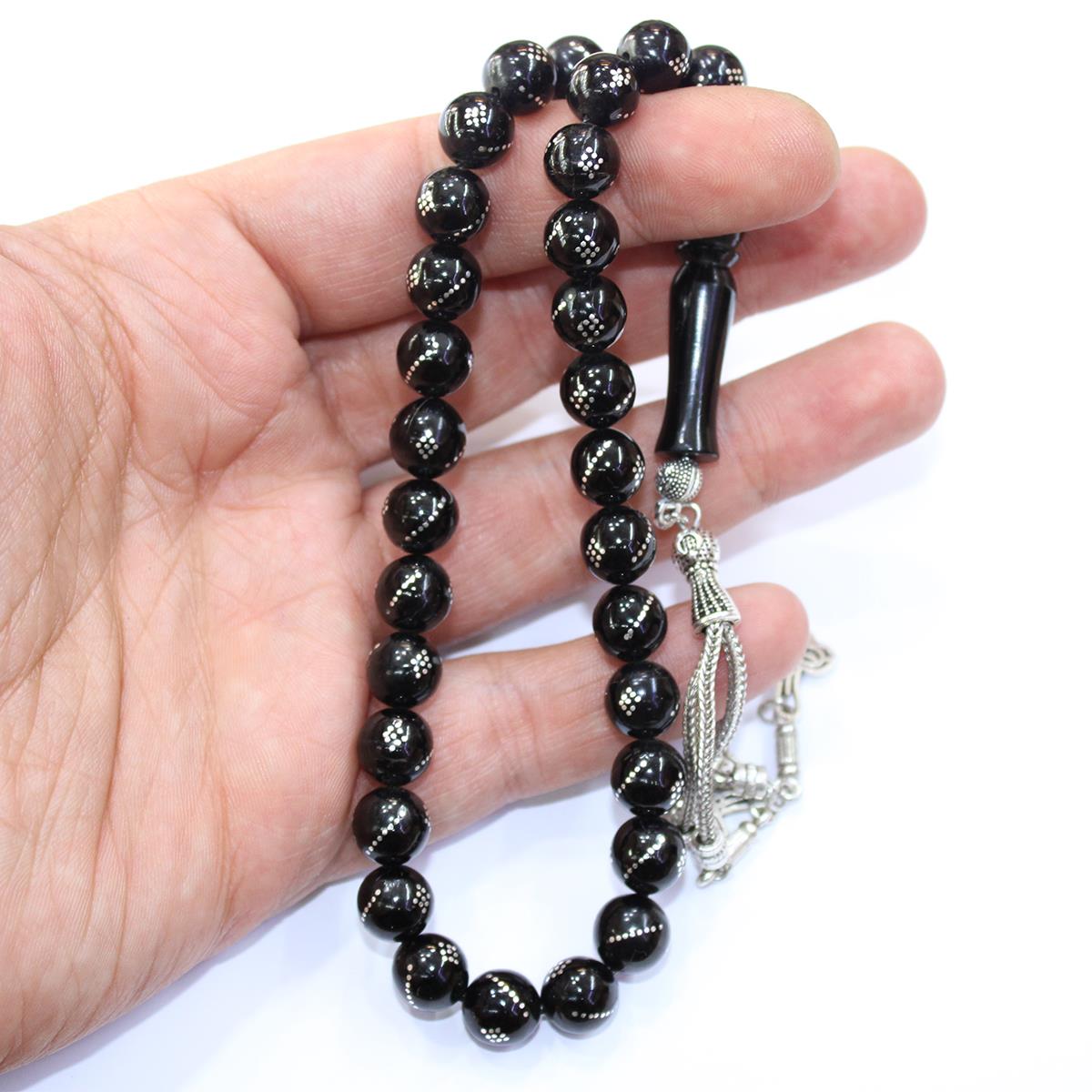 Burgu Baklava İşlemeli Küre Oltu Taşı 9 (mm)