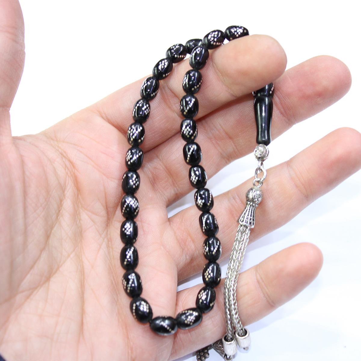 Burgu Baklava İşlemeli Oltu Taşı Tespih 6*9 (mm)