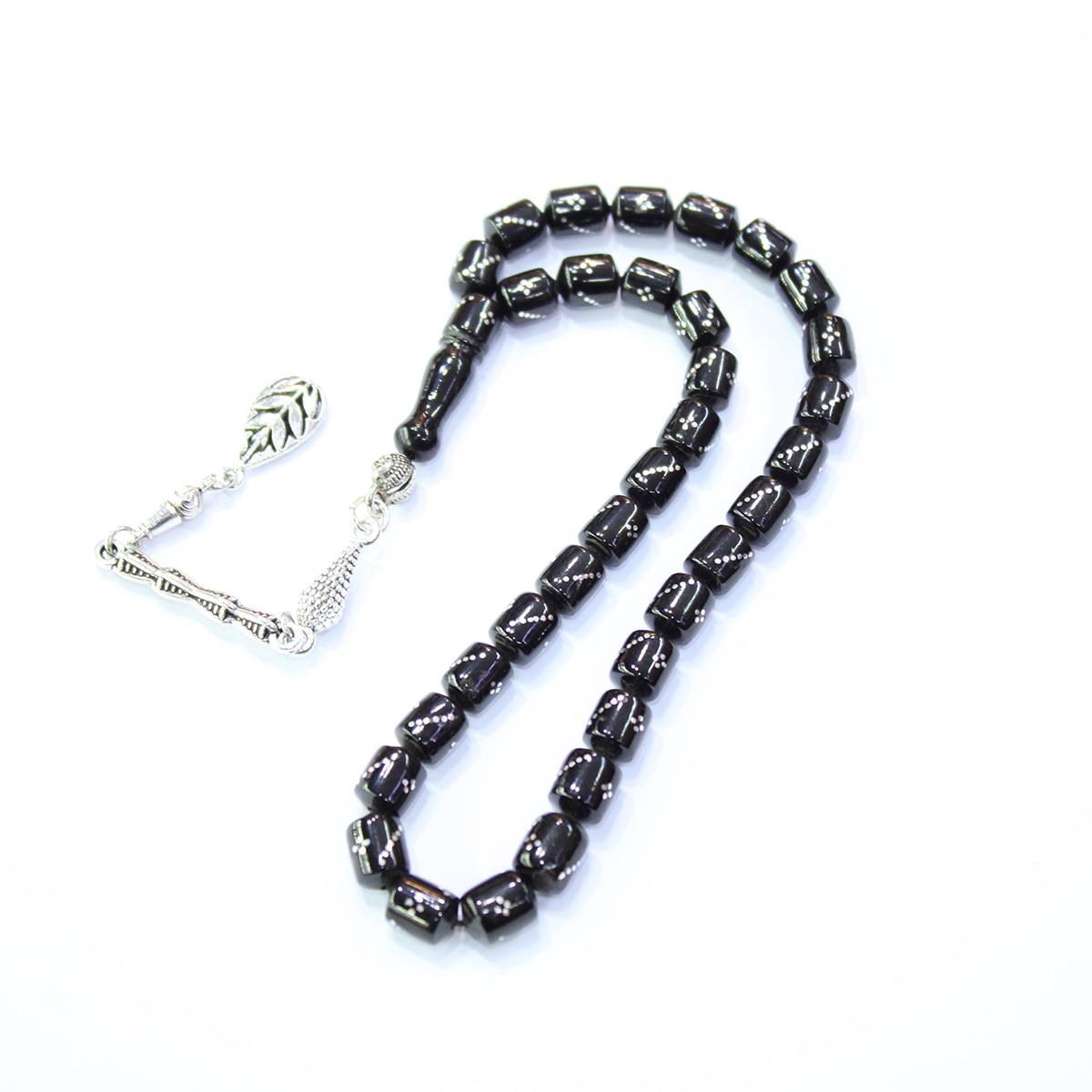 Burgu Dörtlü İşleme Oltu Taşı Kapsül Tespih 6,5*8,5 (mm)