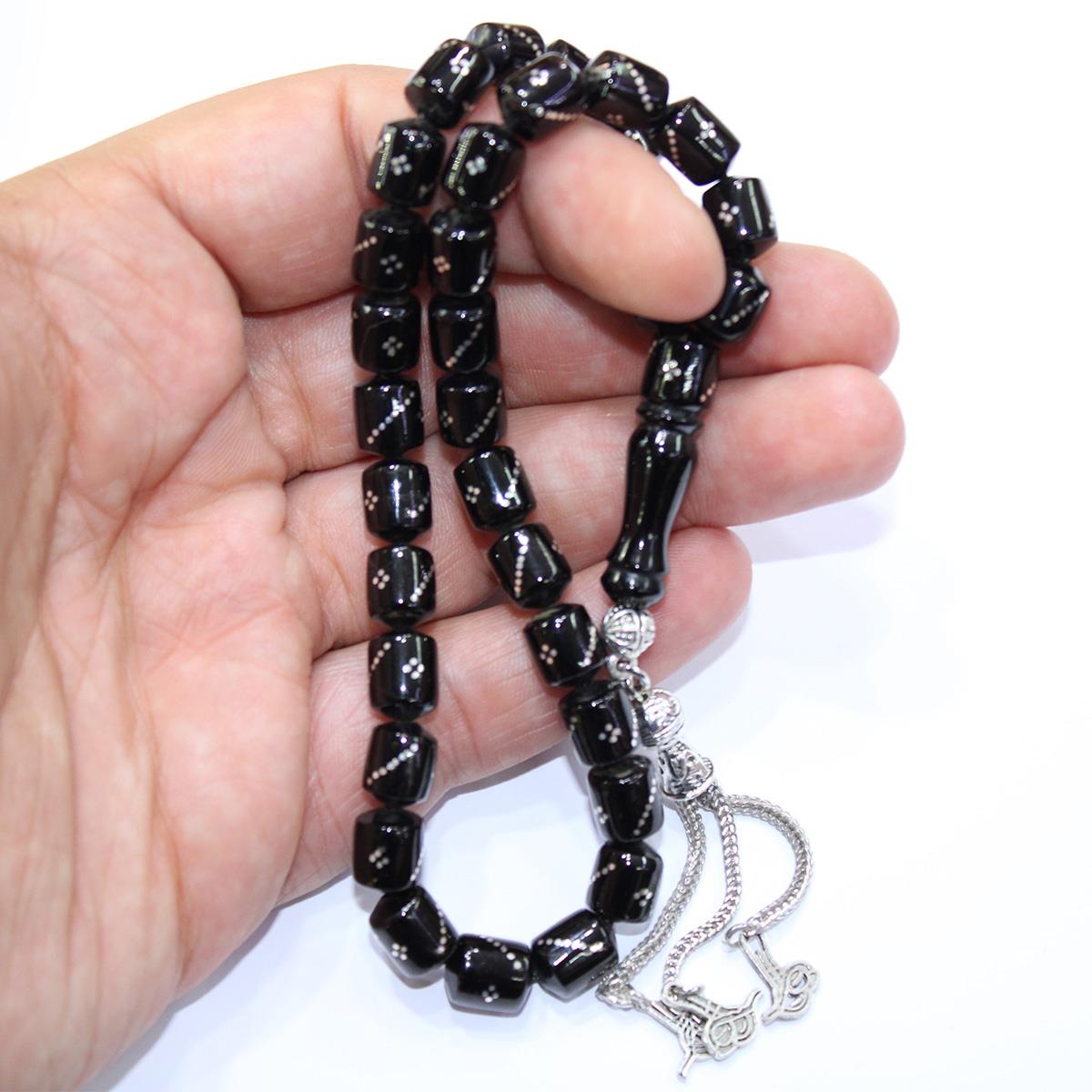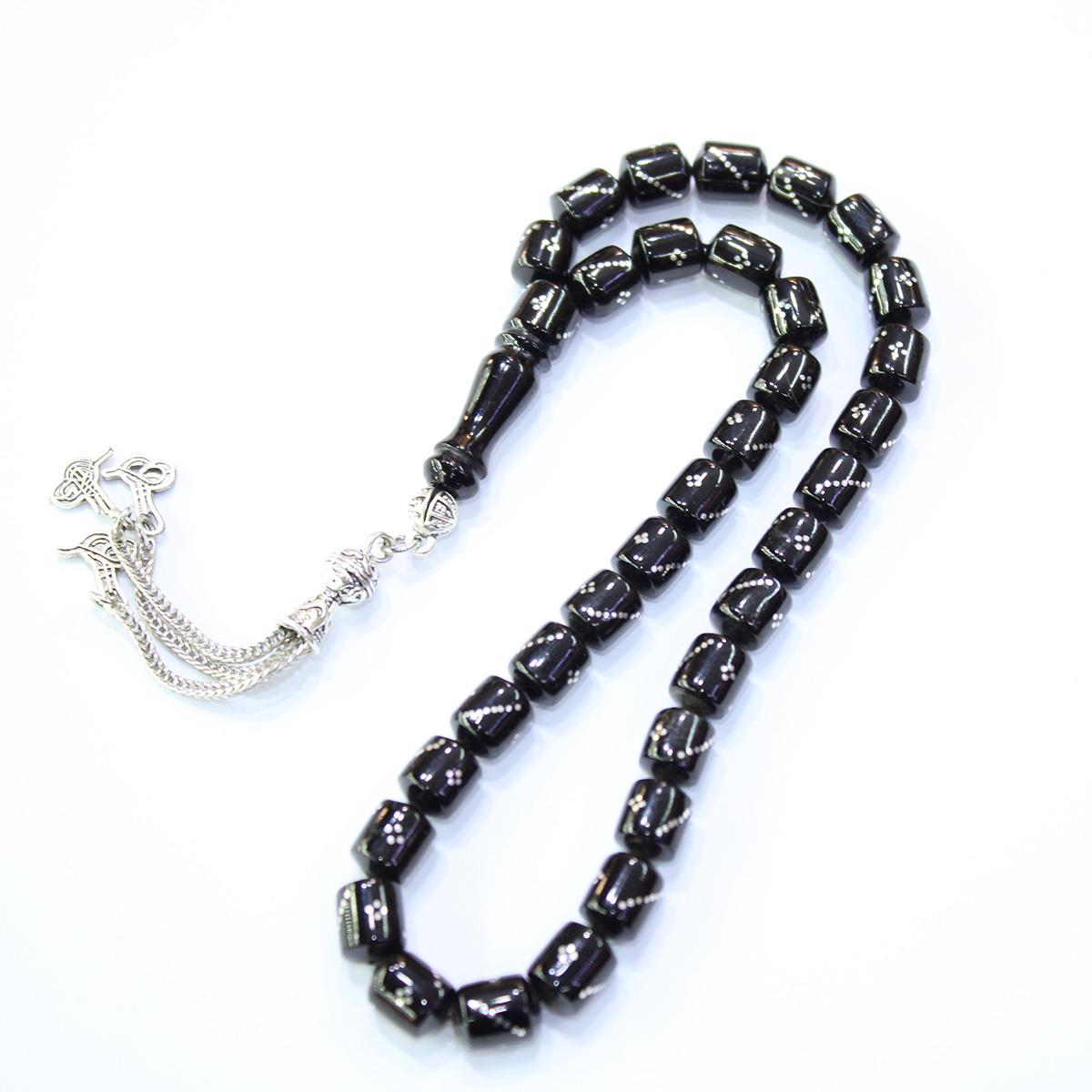 Burgu Dörtlü İşleme Oltu Taşı Kapsül Tespih 7,5*9,5 (mm)
