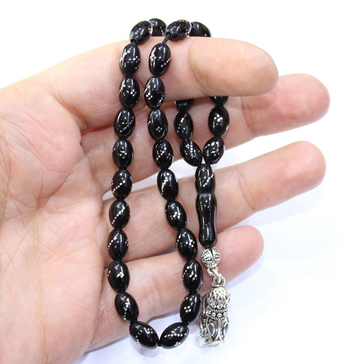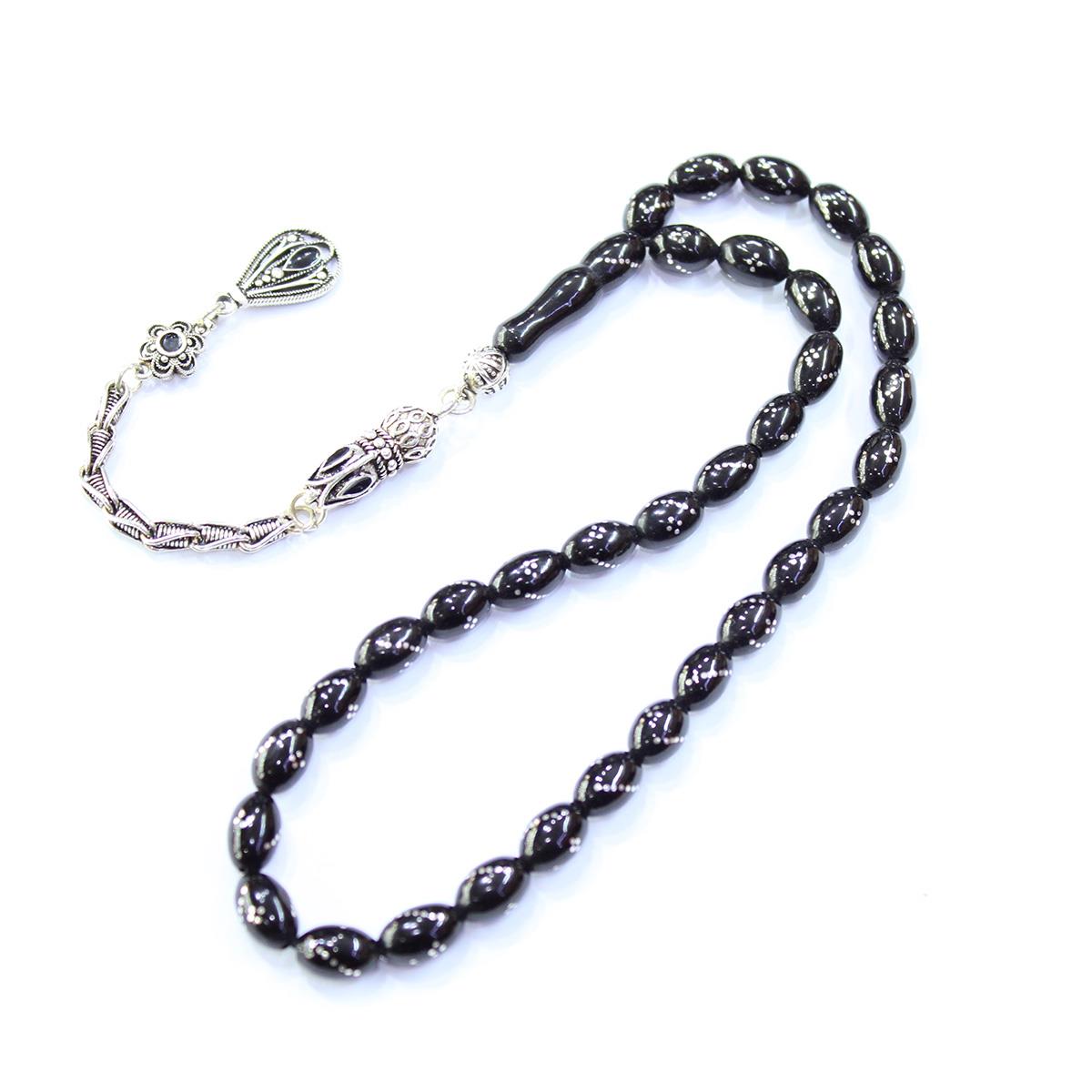 Burgu Dörtlü İşlemeli Oltu Taşı Tespih 6*9 (mm)