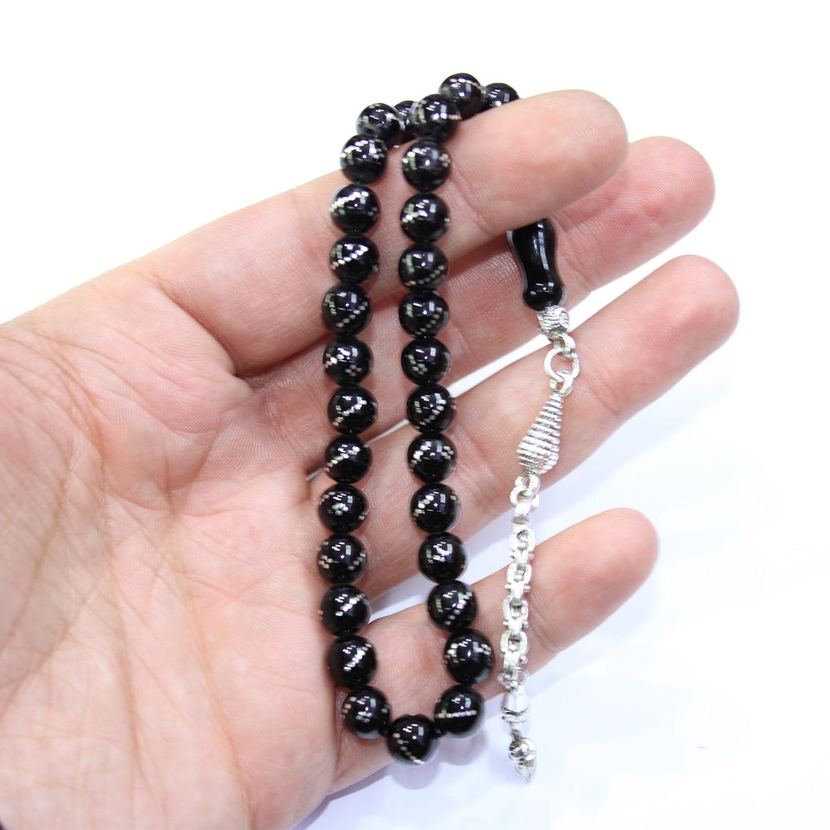 Burgu Dörtlü İşlemeli Oltu Taşı Tespih 7,5 (mm)