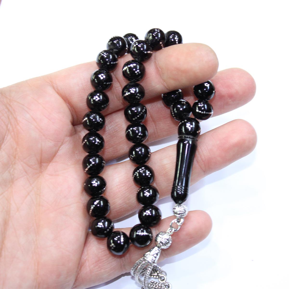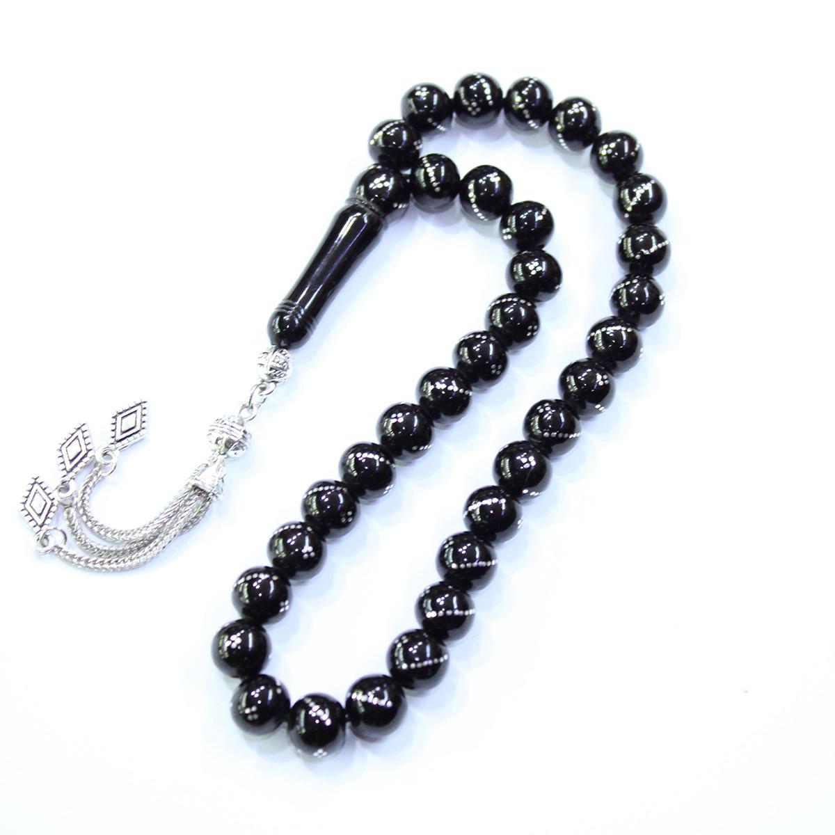 Burgu Dörtlü İşlemeli Oltu Taşı Tespih 9 (mm)