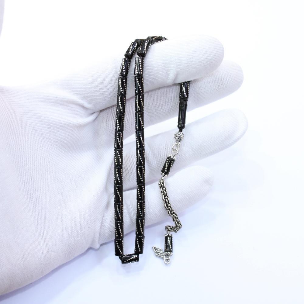 Burgu İşlemeli Kesme Oltu Taşı Tespih 4,5*8,5 (mm)