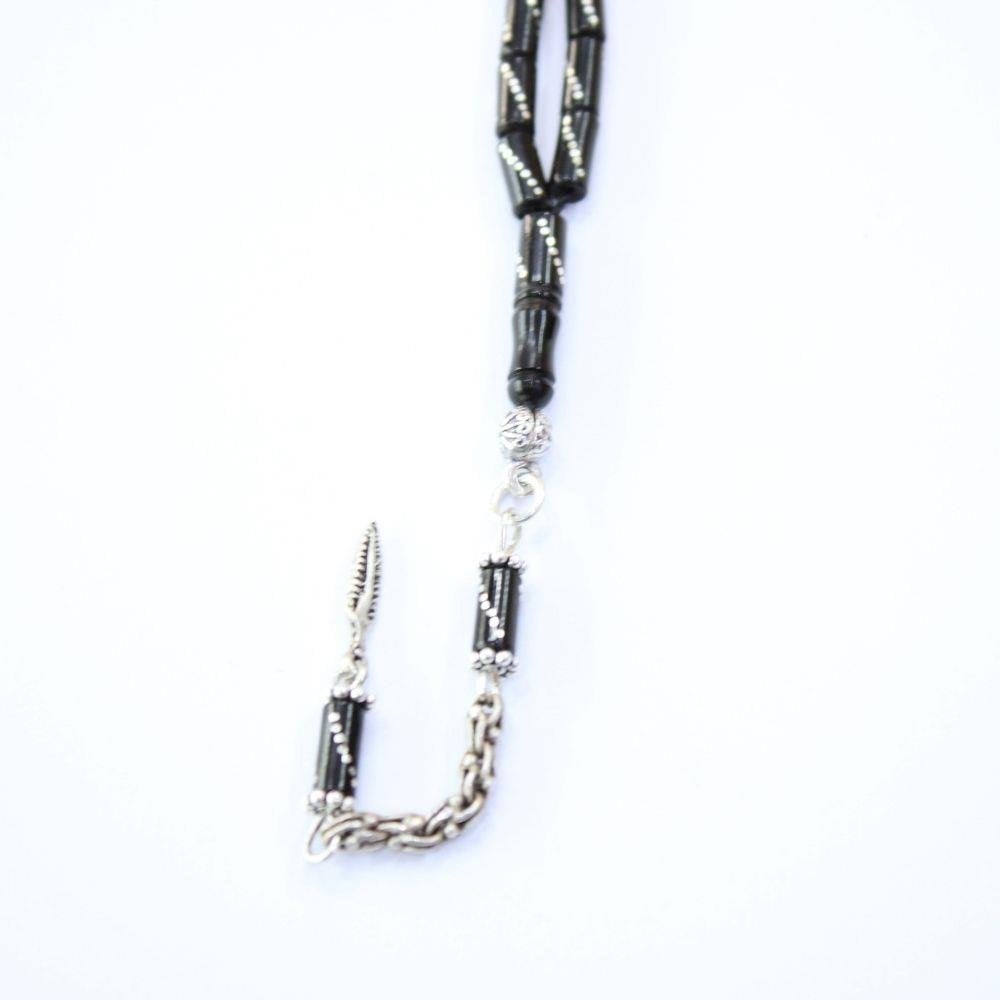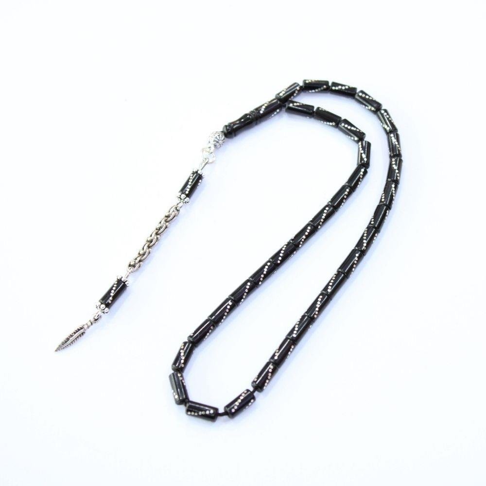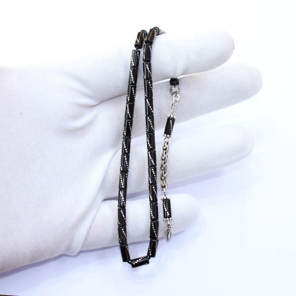 Burgu İşlemeli Kesme Oltu Taşı Tespih 4*8 (mm)
