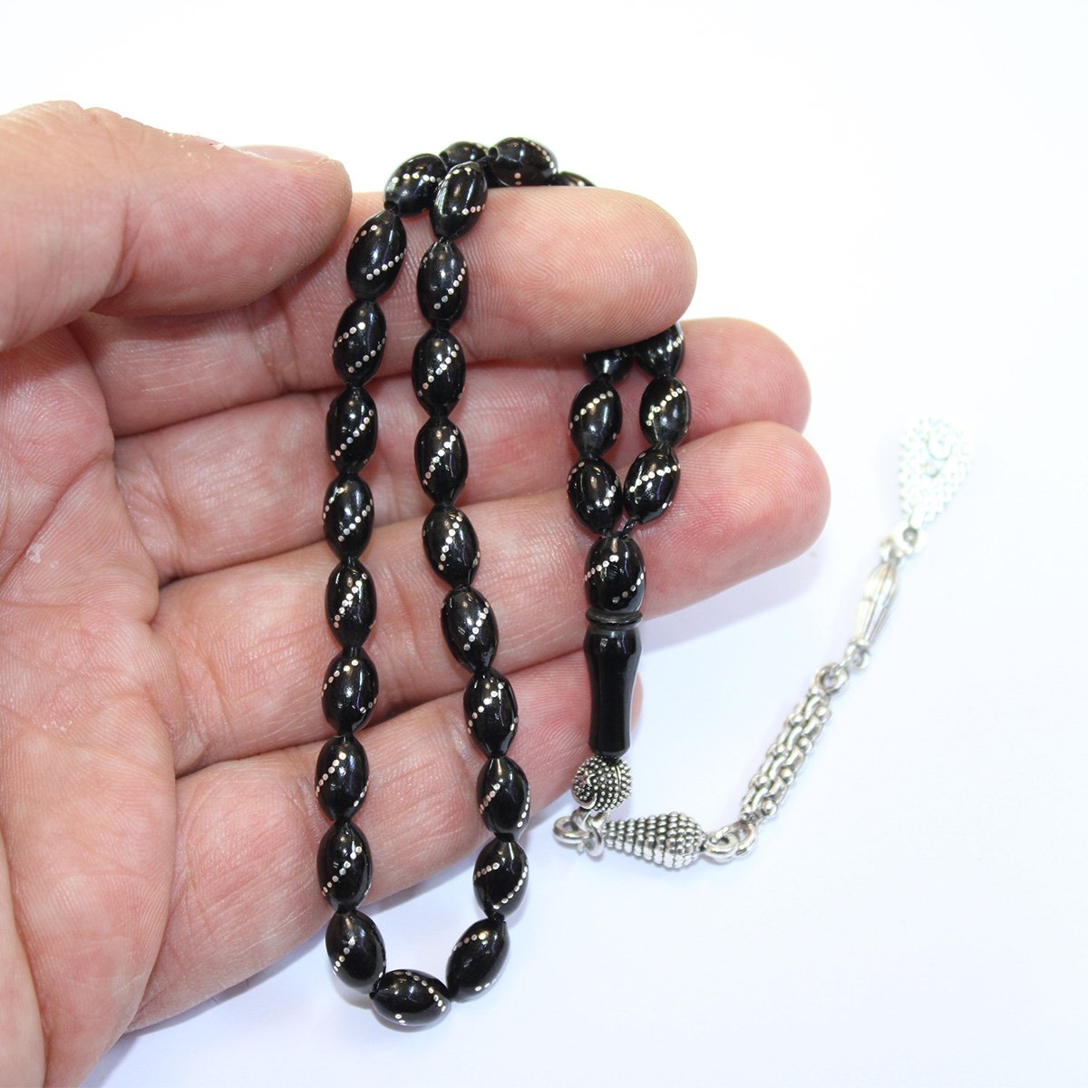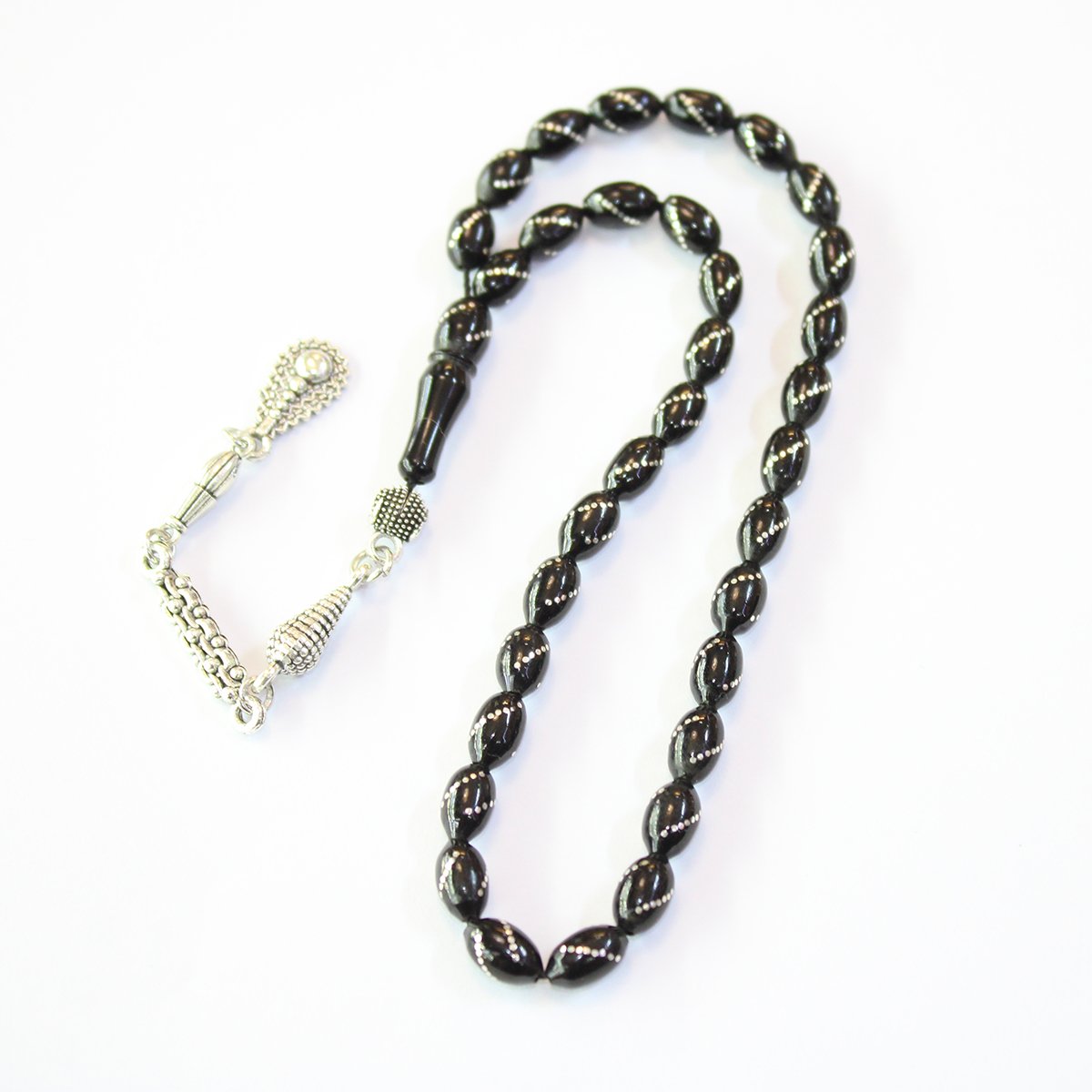 Burgu İşlemeli Oltu Taşı Tespih 5,5*8,5 (mm)
