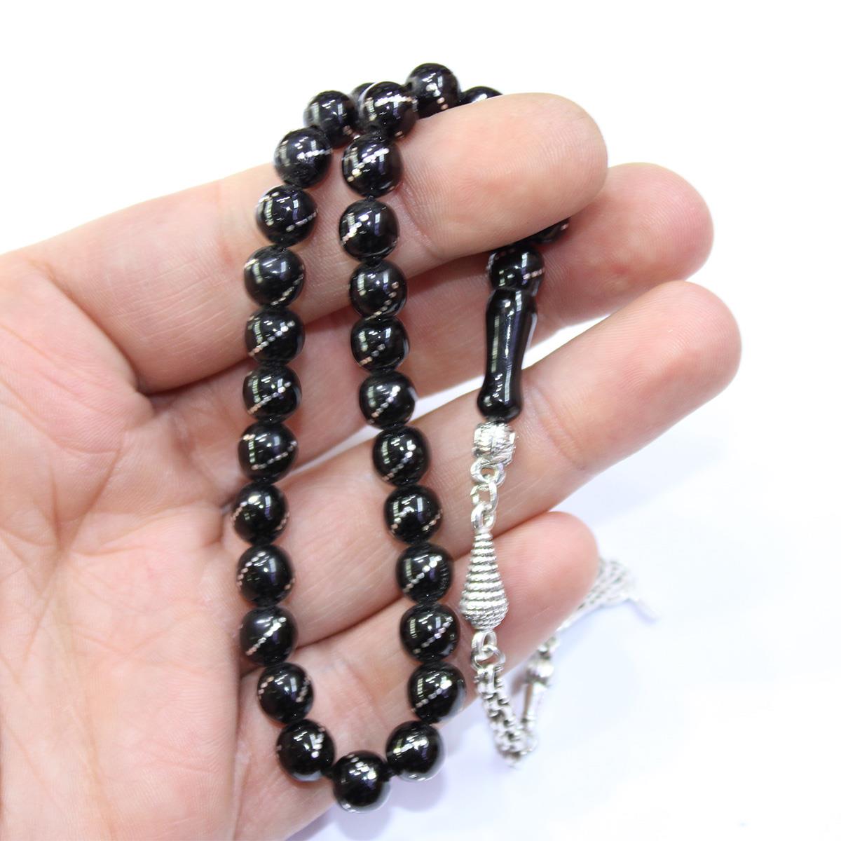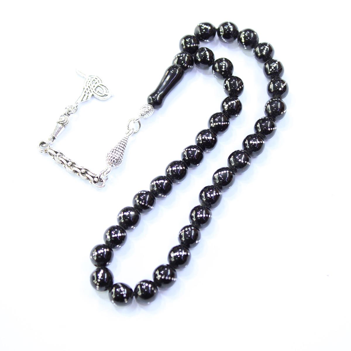 Burgu İşlemeli Oltu Taşı Tespih 7,5 (mm)