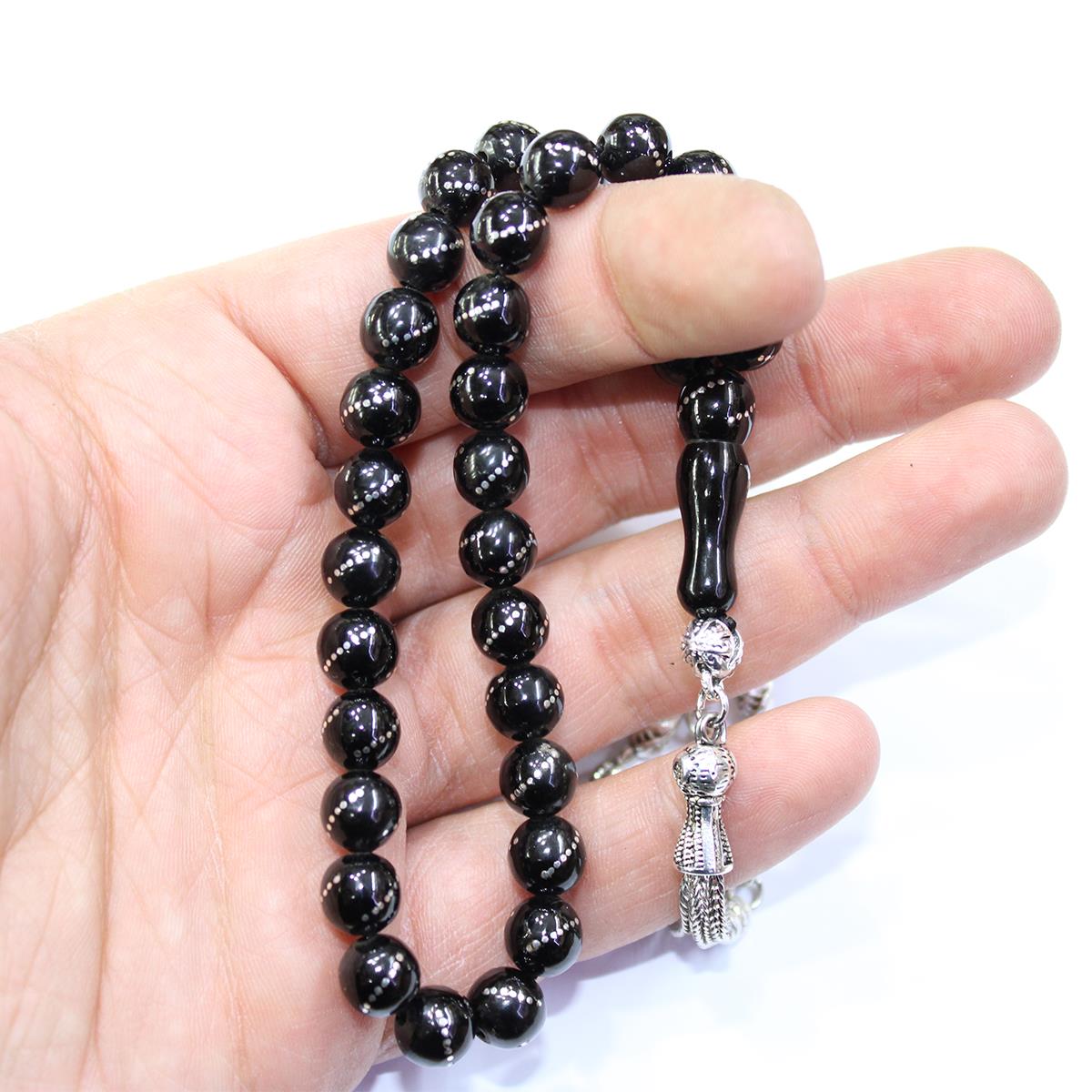 Burgu İşlemeli Oltu Taşı Tespih 7 (mm)