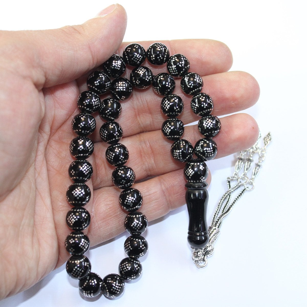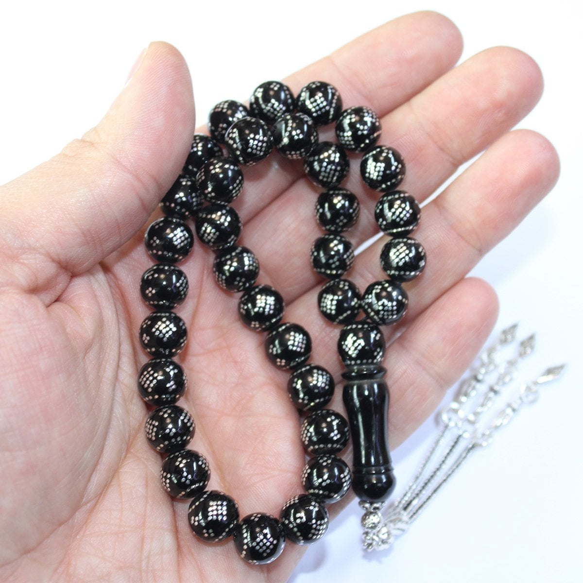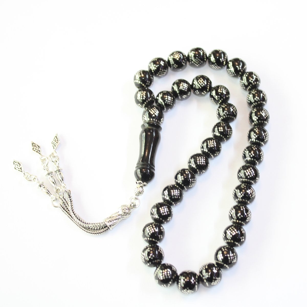 Çember Baklava İşlemeli Oltu Taşı Tespih 10 (mm)
