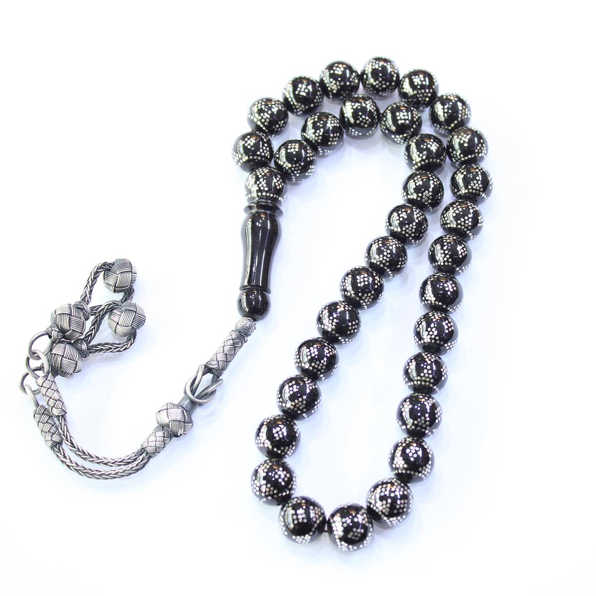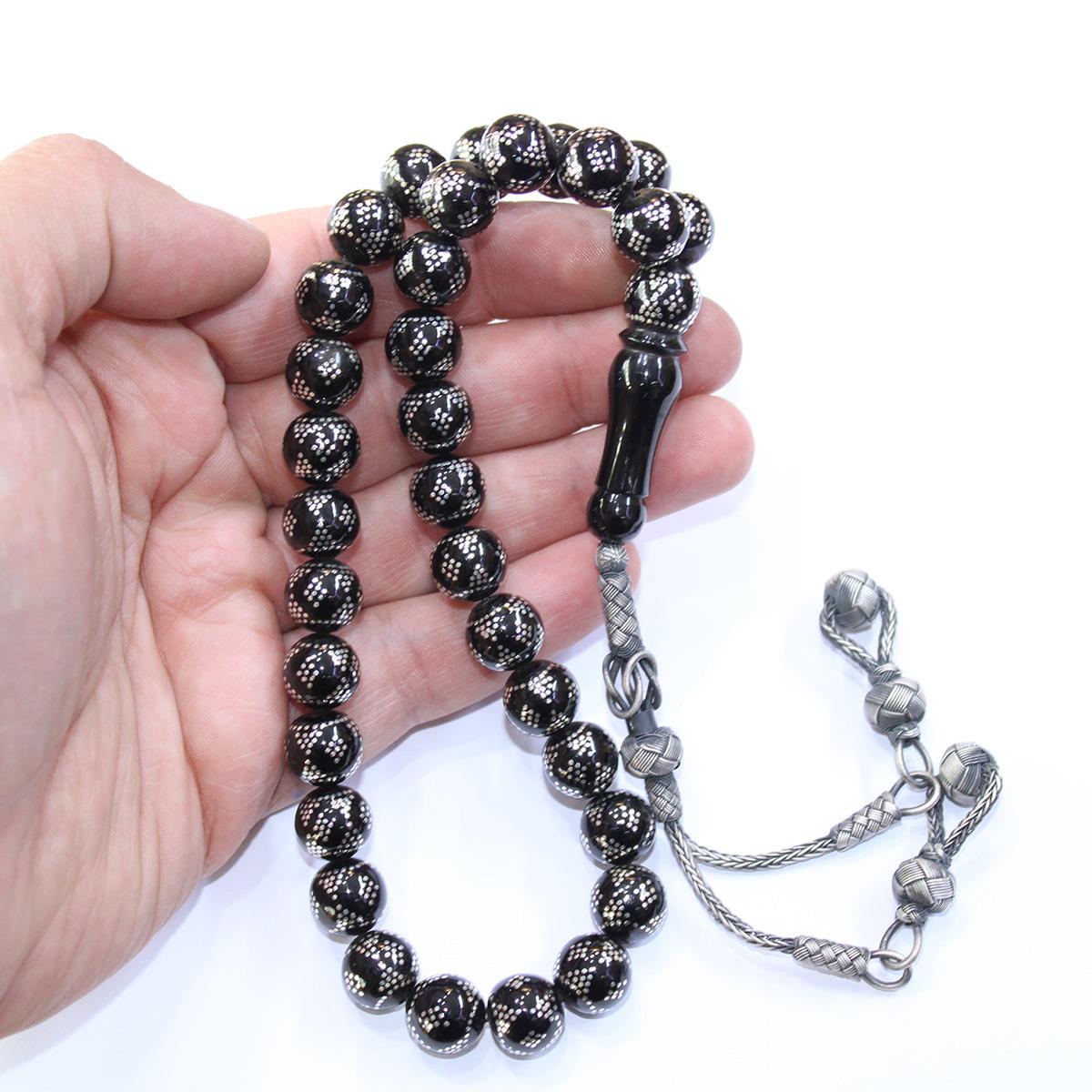 Çember Piramid İşlemeli Oltu Taşı Tespih 11 (mm)