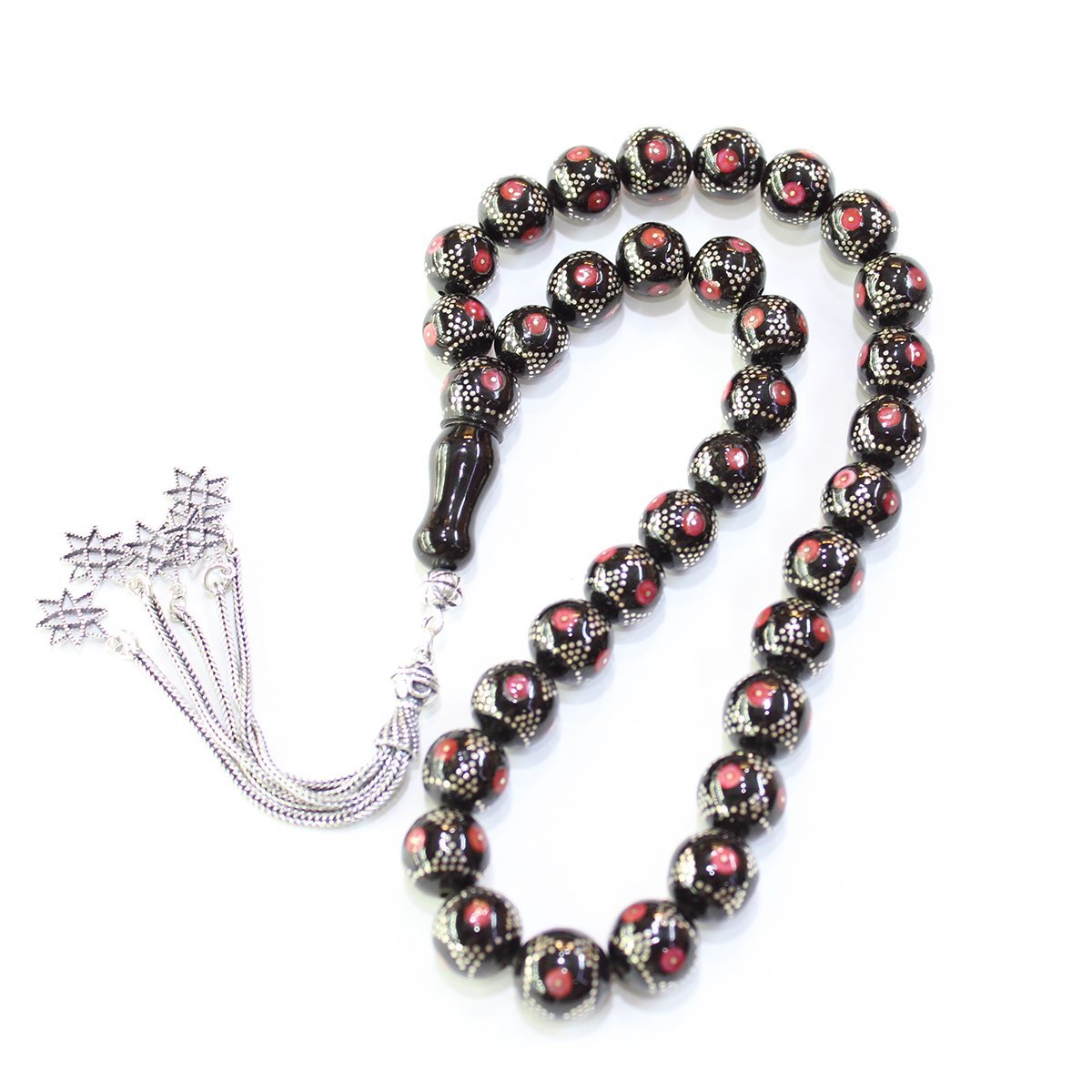 Çember Piramid Mercan İşlemeli Oltu Taşı Tespih 11 (mm)