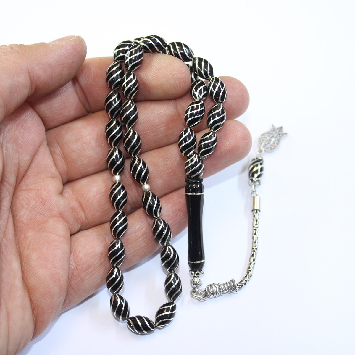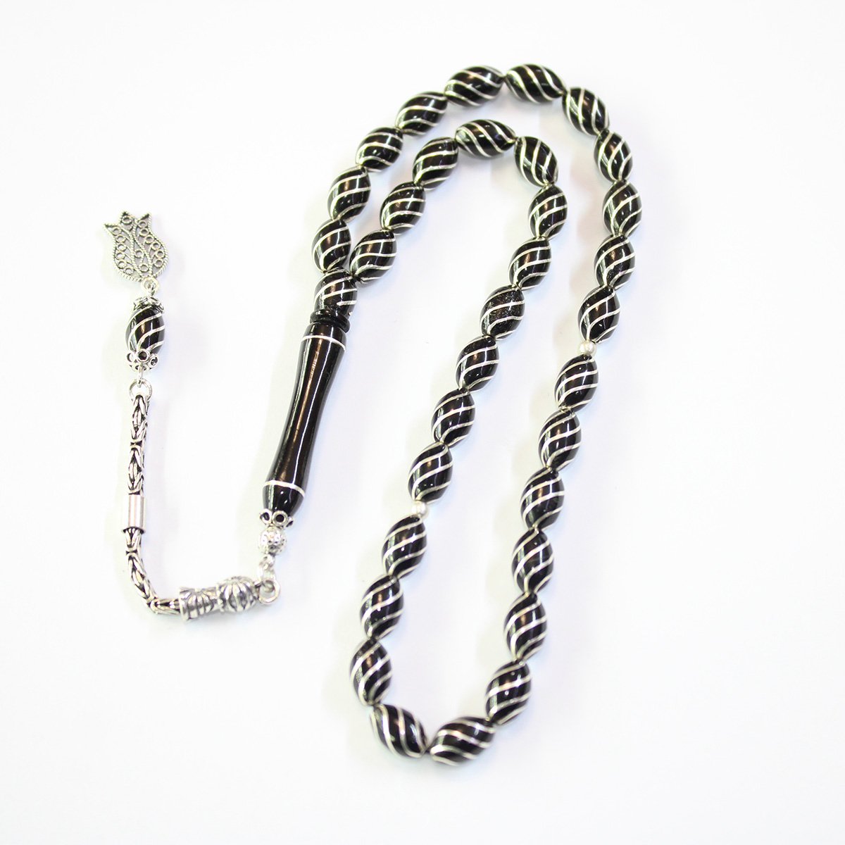 Çeşm-i Bülbül İşlemeli Oltu Taşı Tespih 6*10 (mm)