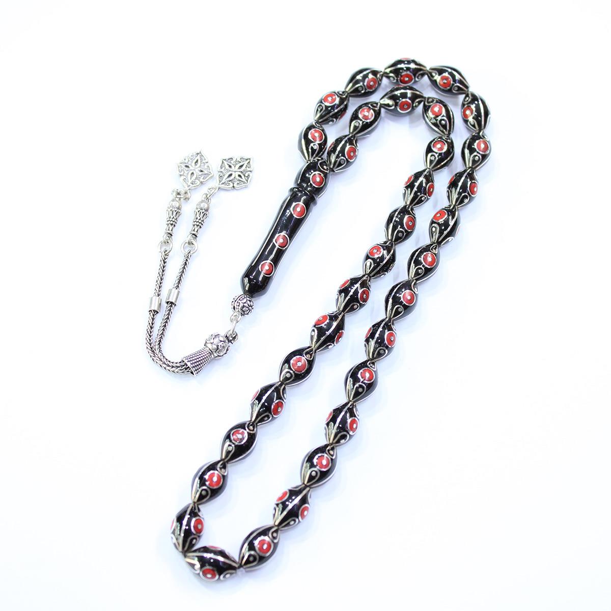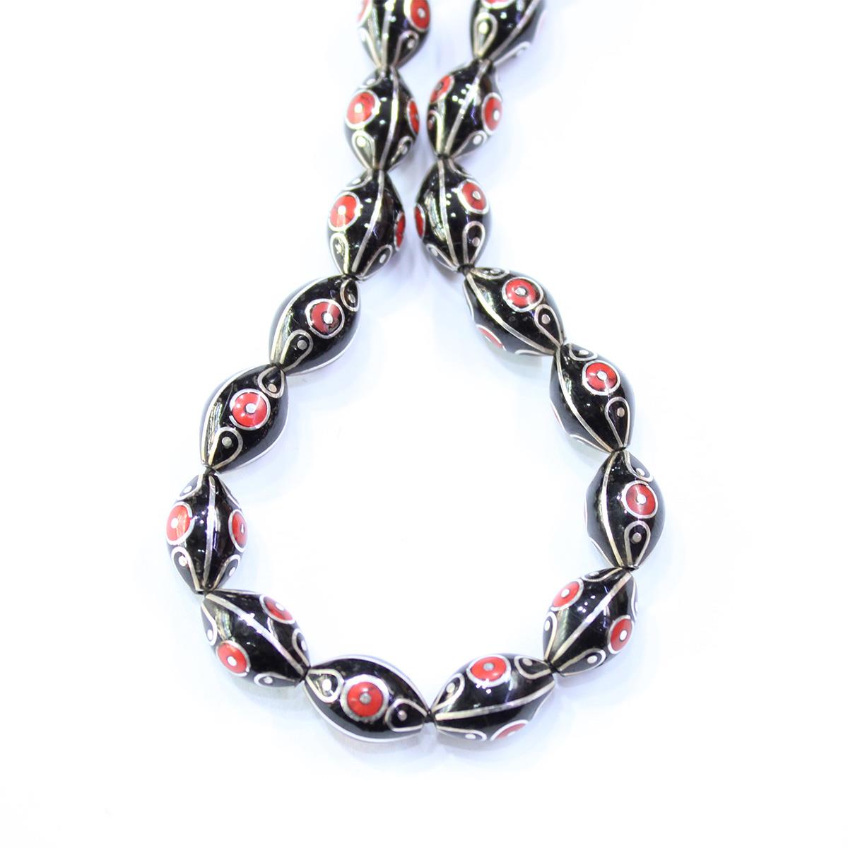 Çeşm-i Bülbül Mercan İşlemeli Oltu Taşı 7,5*12 (mm)