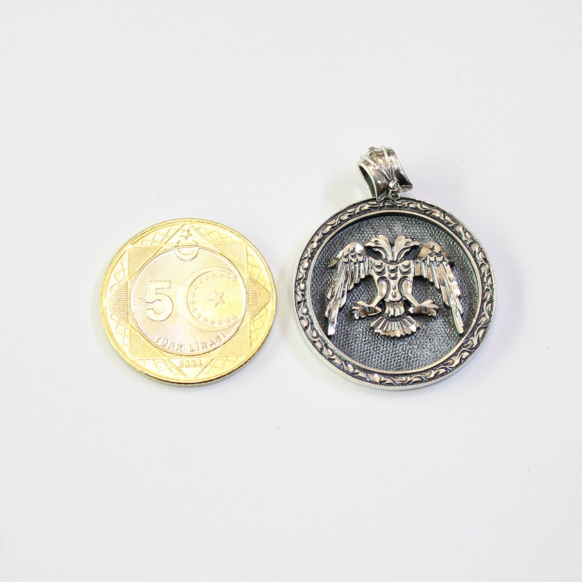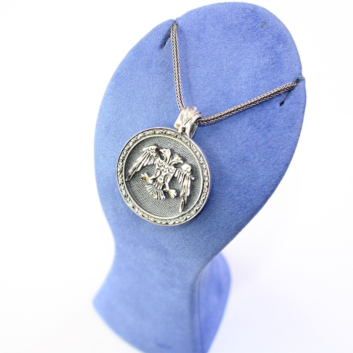 Çift Başlı Kartal Figürlü Kalem İşi Kolye