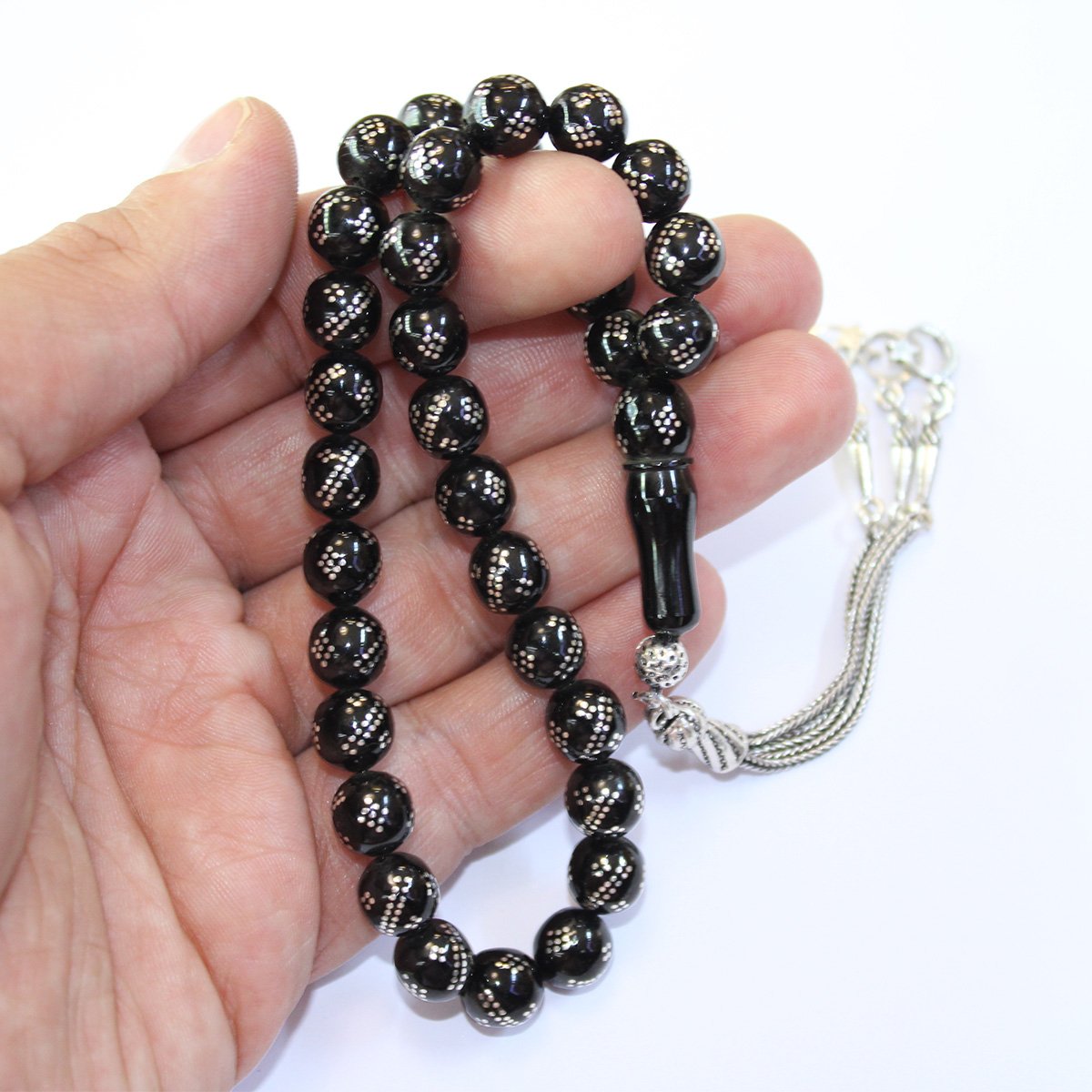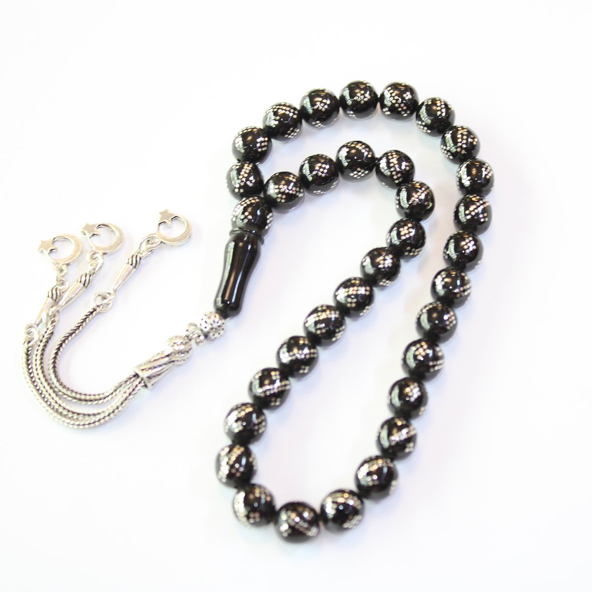 Çift Sıra Burgu Baklava İşleme Oltu Taşı Tespih 8,5 (mm)