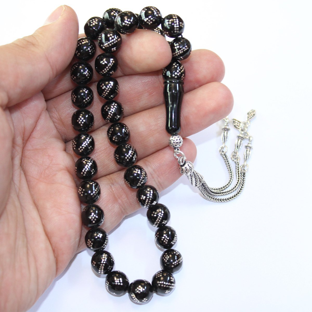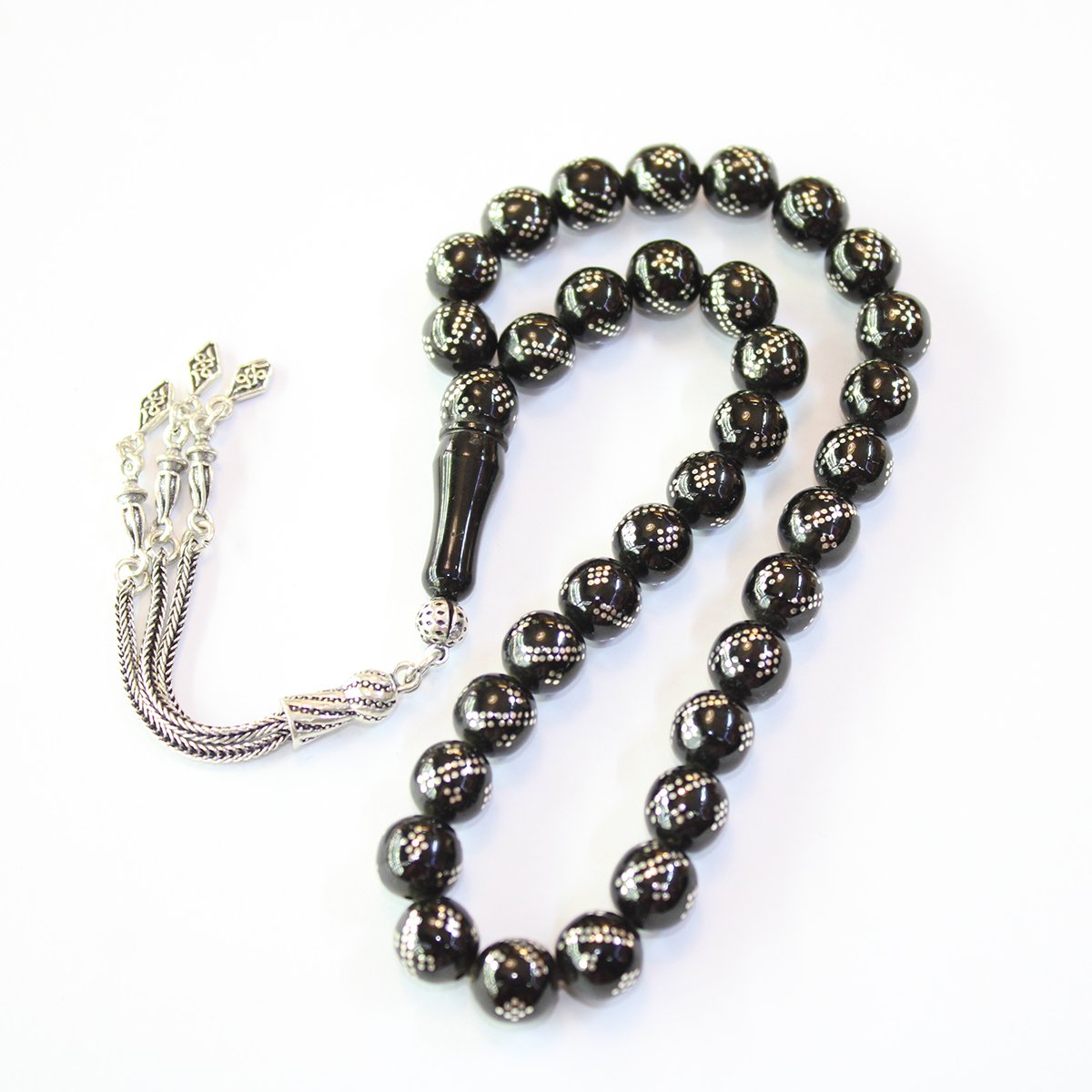 Çift Sıra Burgu Baklava İşleme Oltu Taşı Tespih 9 (mm)