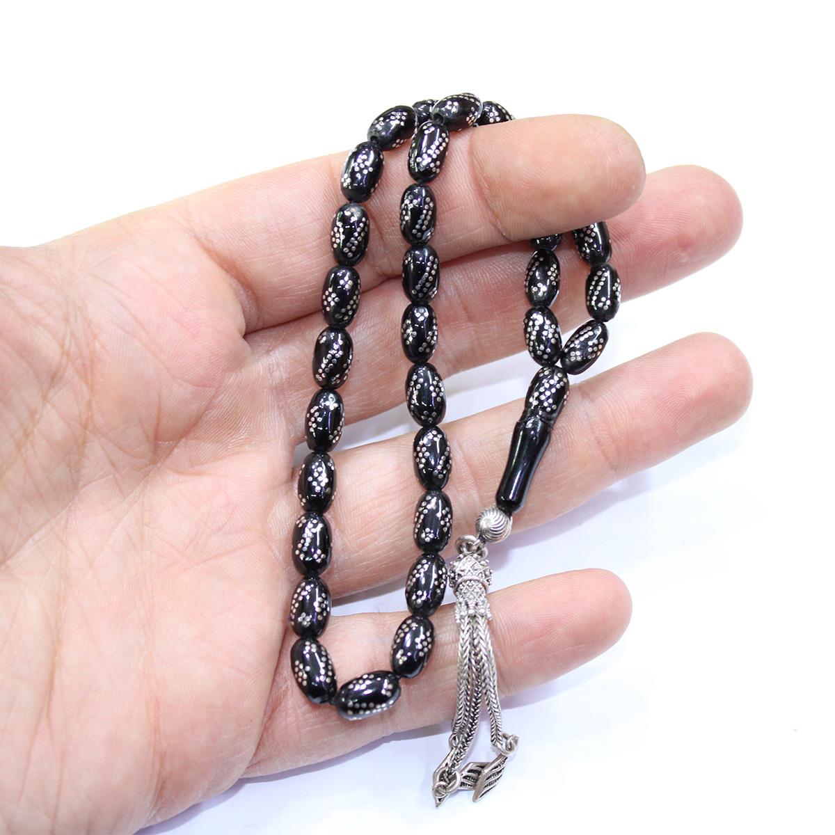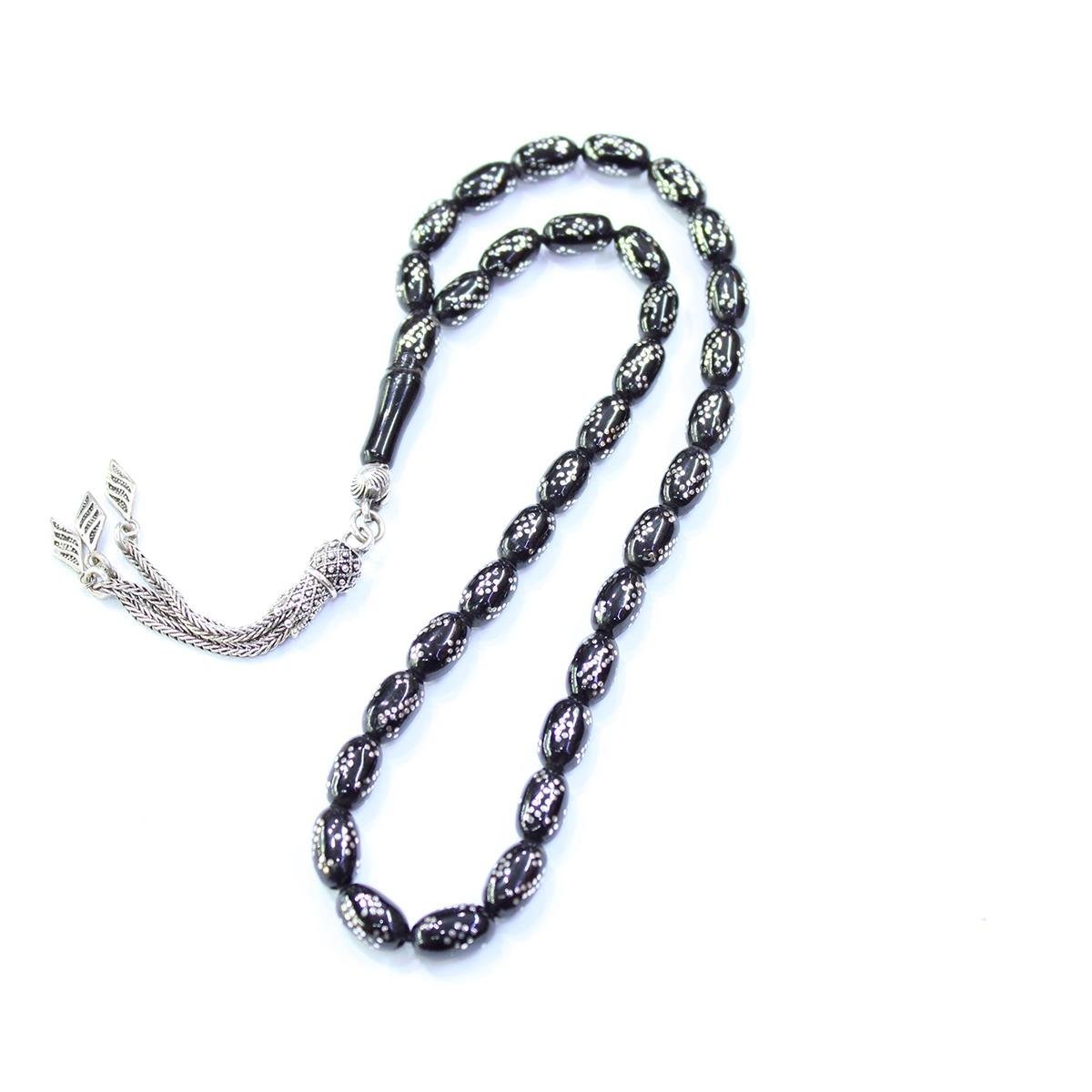 Çift Sıra Burgu Dörtlü İşlemeli Oltu Taşı Tespih 6*9 (mm)