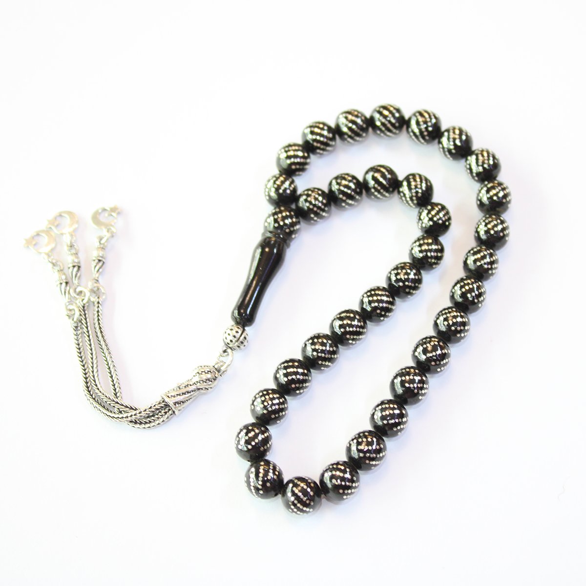 Çoklu Burgu İşleme Oltu Taşı Tespih 8 (mm)