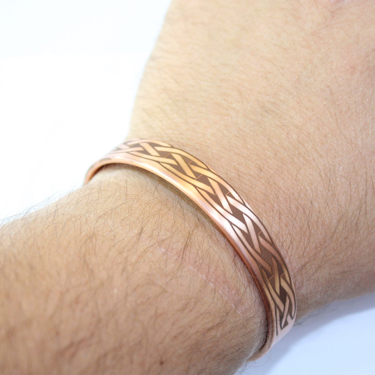 Bakır takınız saf bakırdır. Bir kaplaması yoktur. Saf bakır olduğu için karama yapacaktır. Oksitlenme bakırın doğasındandır. Bakır deride yeşilimsi bir renk oluşturabilir, bu bakırın deri ile etkileşimidir. Binlerce yıldır kullanılan bakırın anti- inflamatuar özelliği;eklem ağrıları (kıkırdakların gelişmesini sağlayarak ), vücuttaki enerji akışını düzenlediği, bağışıklık sistemini güçlendirildiği ve kan dolaşımını düzenlediği, hatta toksinlerin atılmasına yardımcı olduğu bilinmektedir.