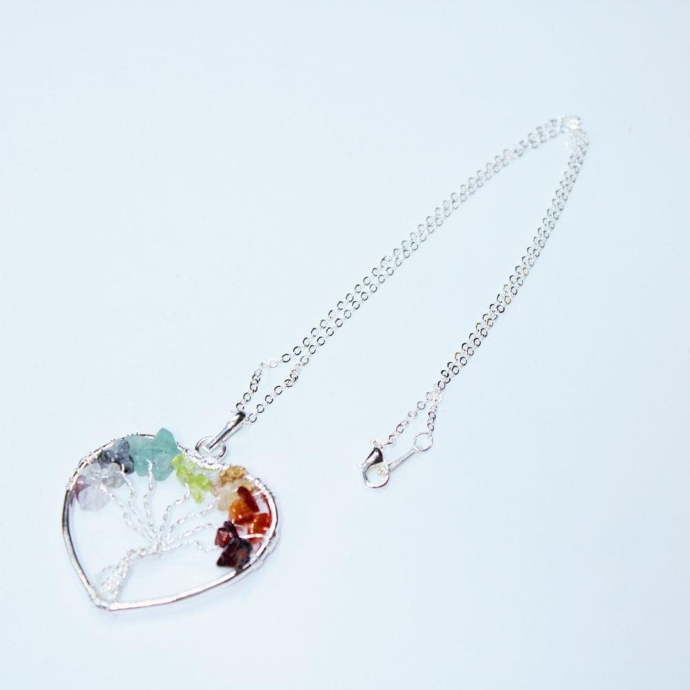 Doğal Taş Kalpli Hayat Ağacı Kolye